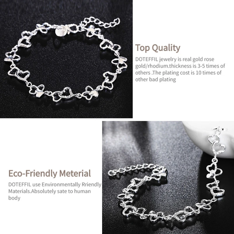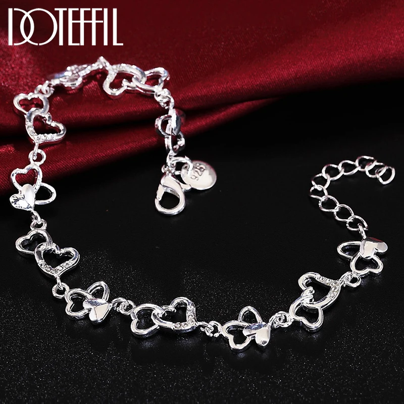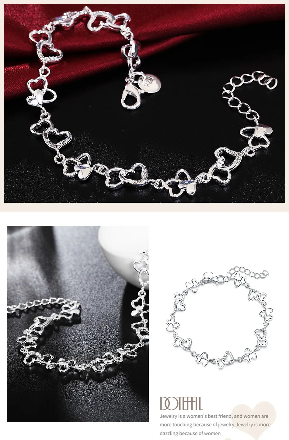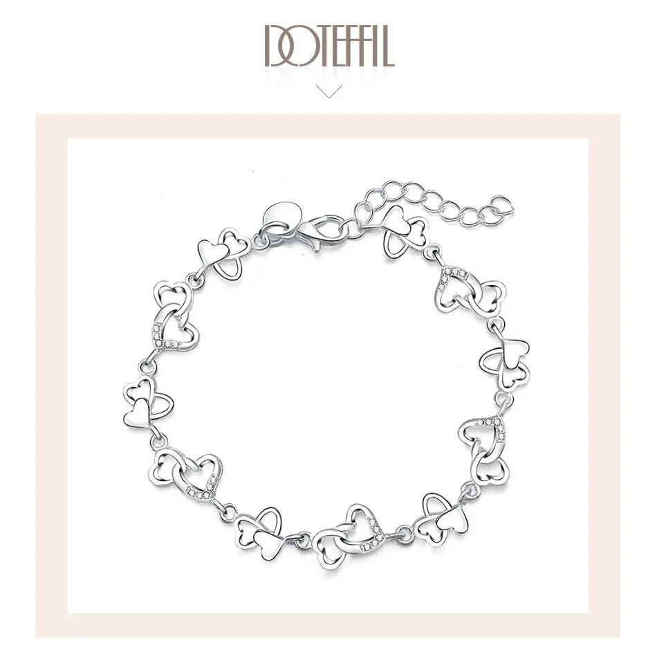 Женский браслет-цепочка DOTEFFIL, из серебра 925 пробы с цирконием класса ААА, с сердцем, для свадьбы, помолвки, вечеринки, модные ювелирные украшения