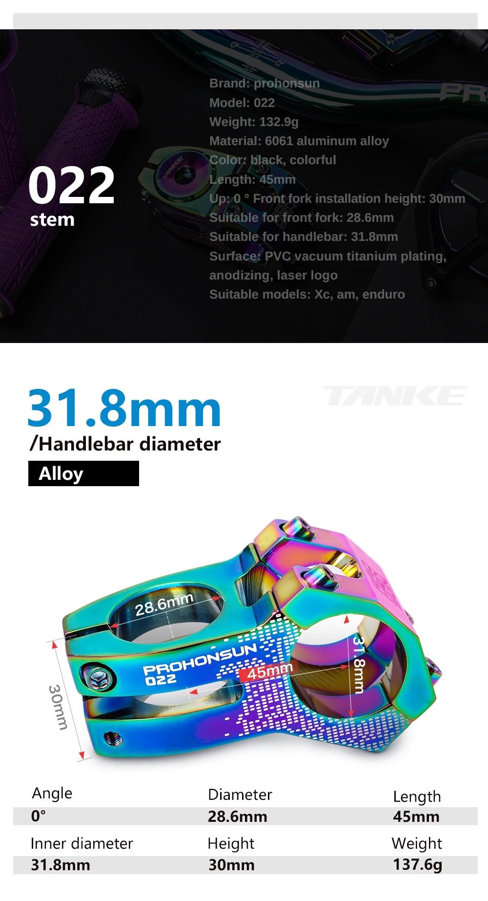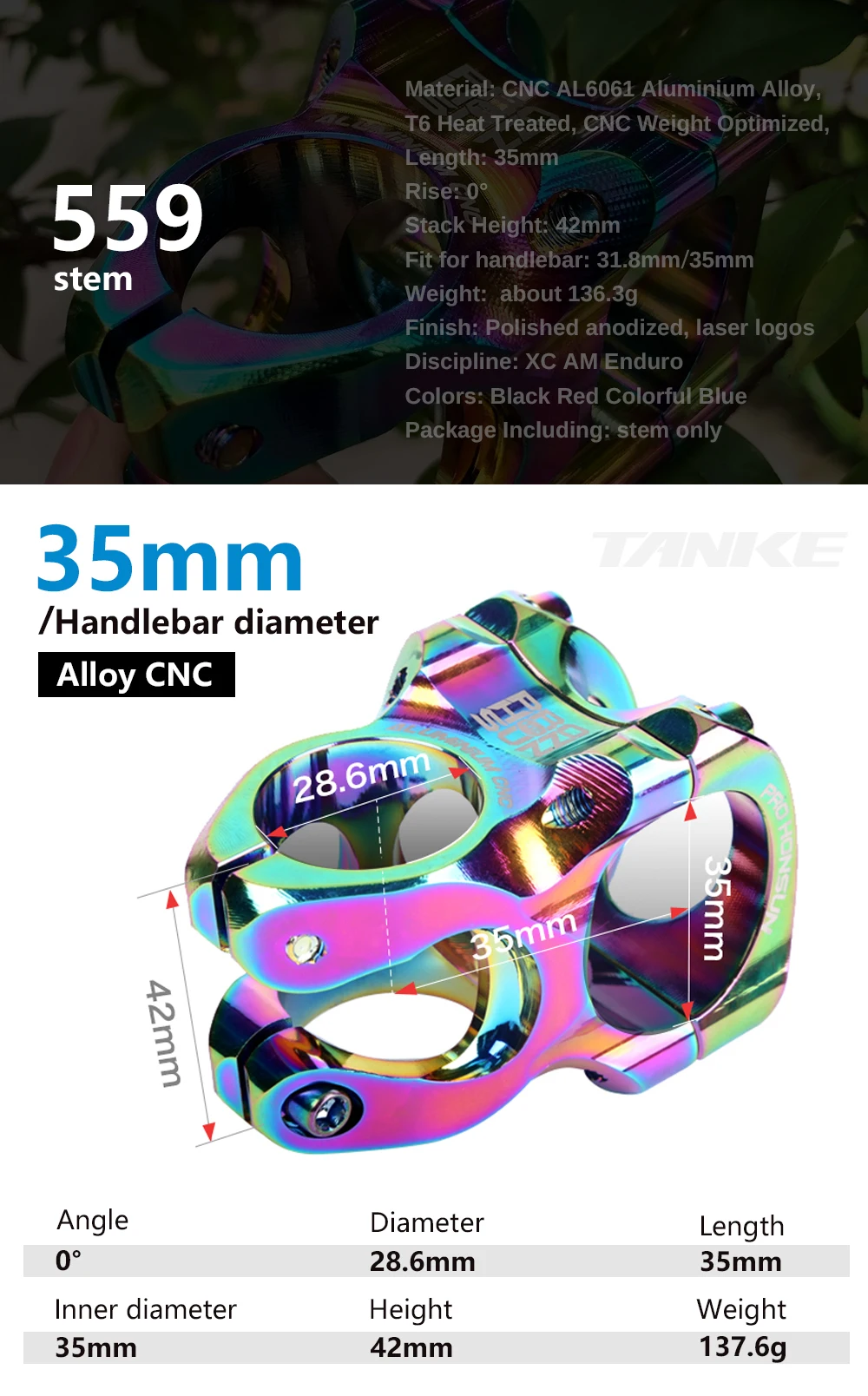 Руль для горного велосипеда TANKE, 35 мм, с ЧПУ, 31,8 мм, Сверхлегкий, с подъемом 0 градусов, FR AM Enduro, 28,6 мм, Steerer, запчасти для горного велосипеда