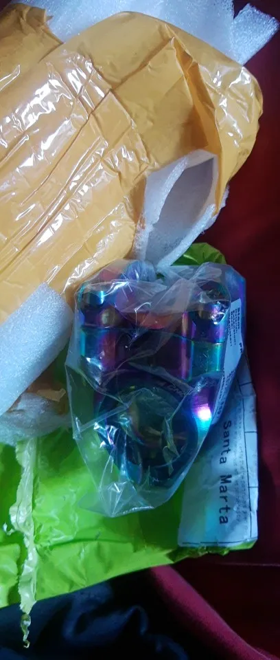 . .Продавец долго собирался отправить заказ, но в итоге после отправки товар дошёл очень быстро. Упаковано было в пеноматериал, коробка с педалями была проткнута шипами, но остальные детали(вынос и подсидельный хомут) не поцарапались. Все детали смотрятся качественно . Вынос так вообще копией Race face turbin.. Вобщем рекомендую .