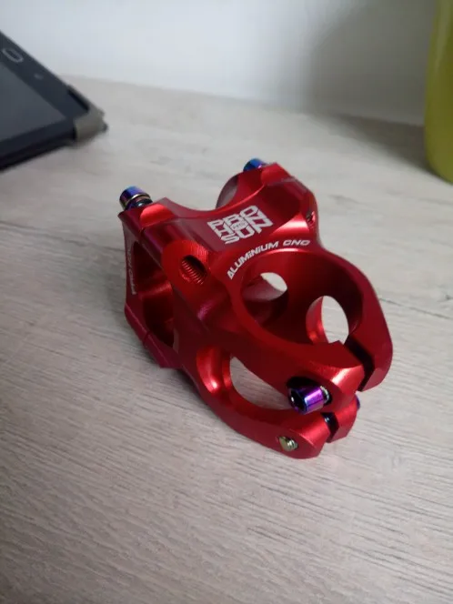 }{ороший вынос, красивый почти в цвет с байком YETY. Выглядит надежно, жаль нету весов нормальных, есть для тяжестей они показывают 200 грамм. Короче тяжелее чем старый, но думаю для эндуро точно подойдет. Только краска царапается, будьте осторожнее, впрочем как и с любой покрашенной вещью. )) Ехало чуть больше 2х недель.