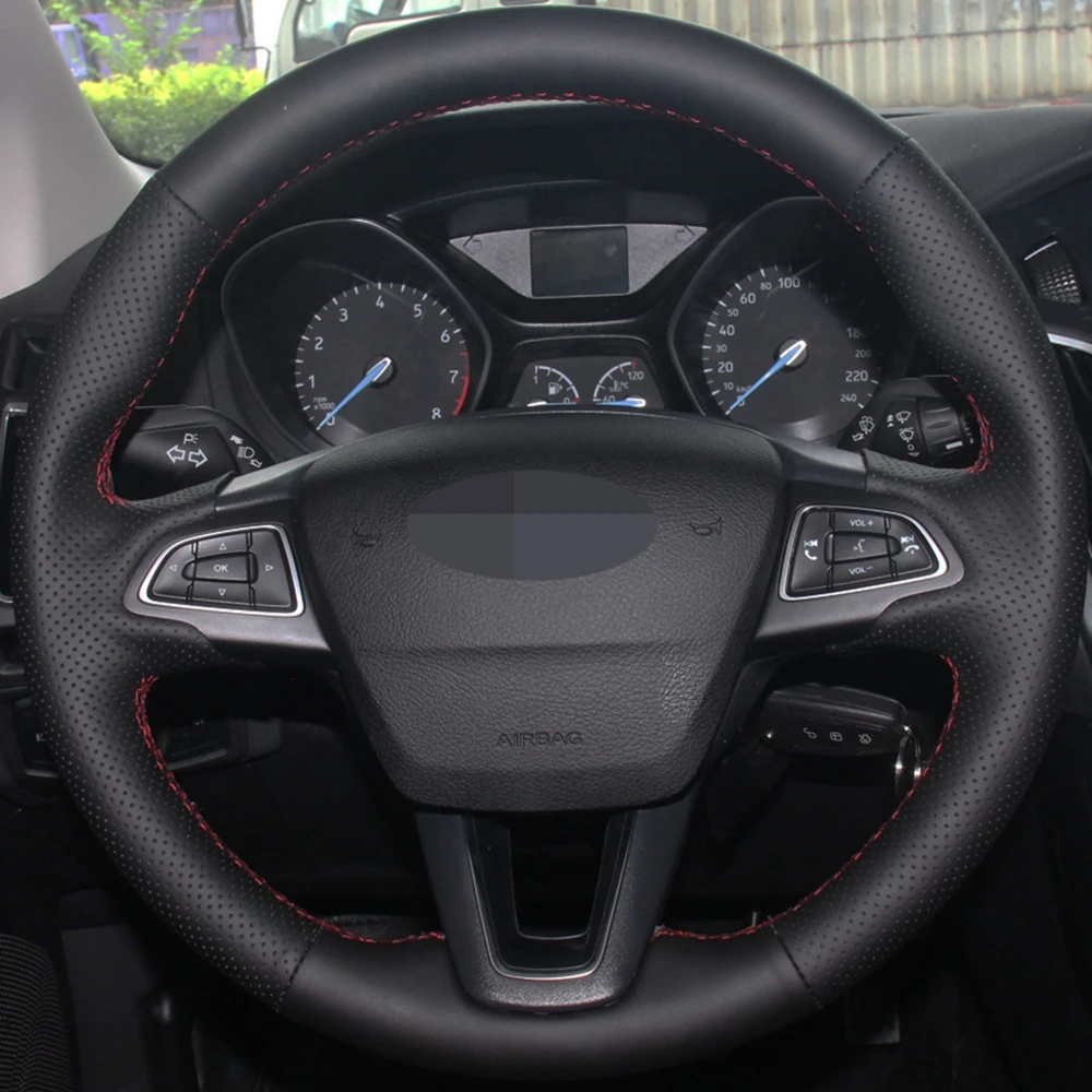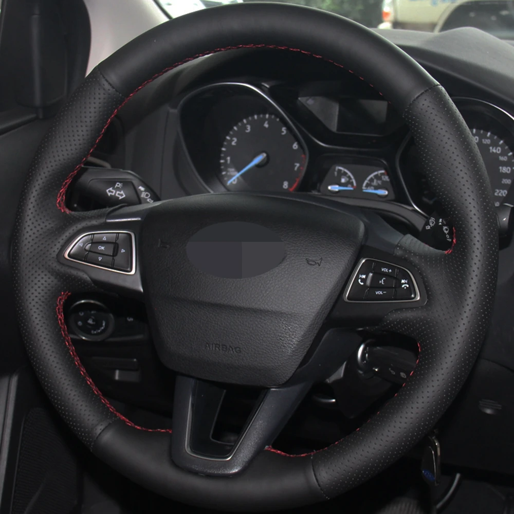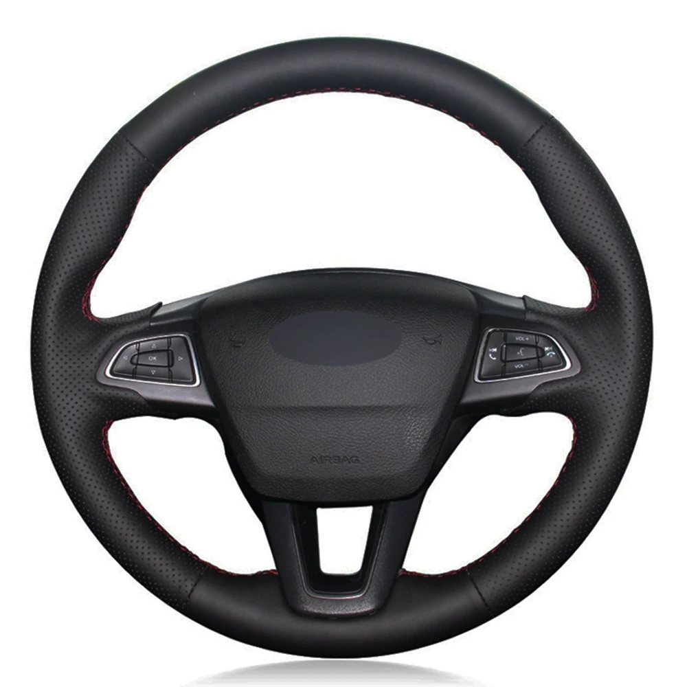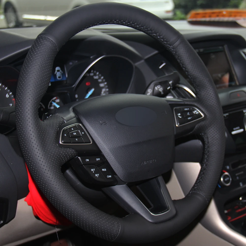 Чехол рулевого колеса автомобиля черная искусственная кожа для Ford Focus 3 2015-2018 Kuga 2016-2019 Escape C-MAX Ecosport 2018-2019