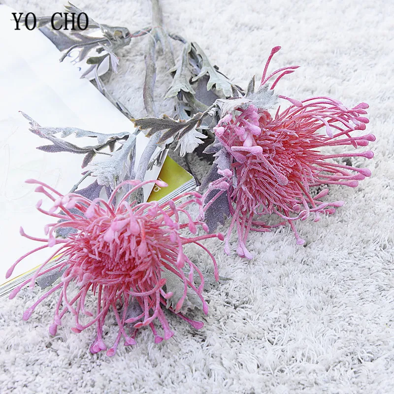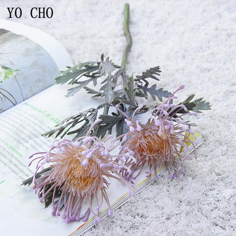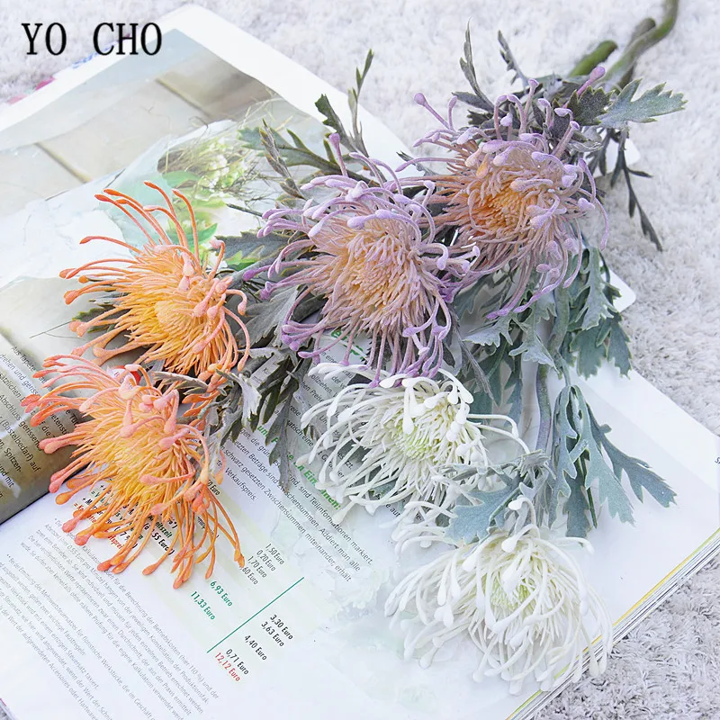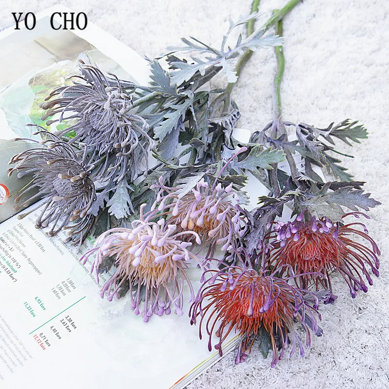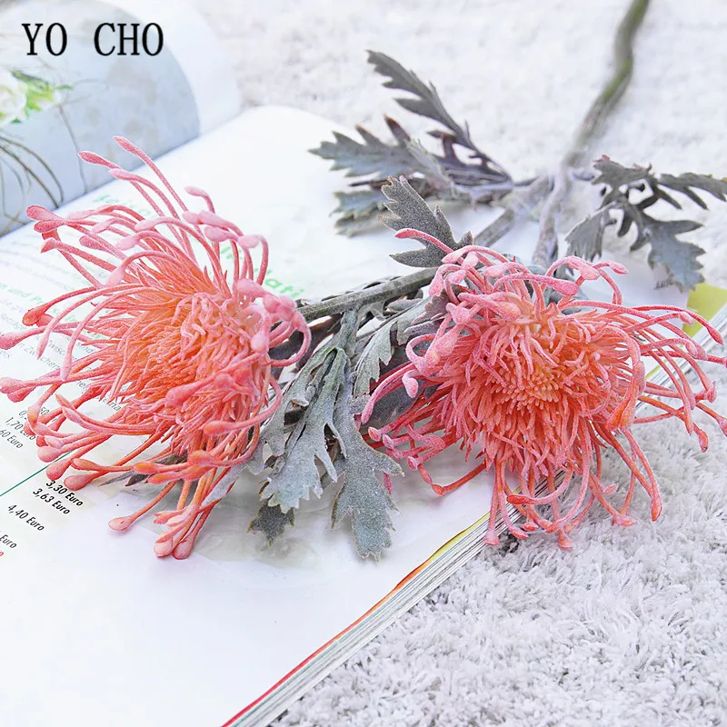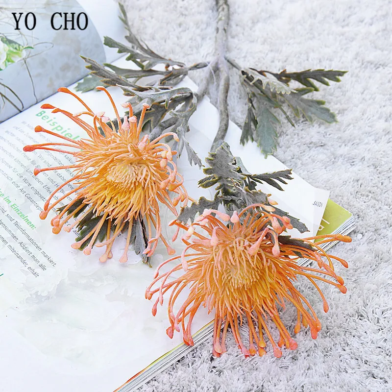 YO CHO искусственный цветок Leucospermum, свадебное украшение, короткая ветка, вертушка, 2 вилки, булавка, цветок для дома, искусственный цветок