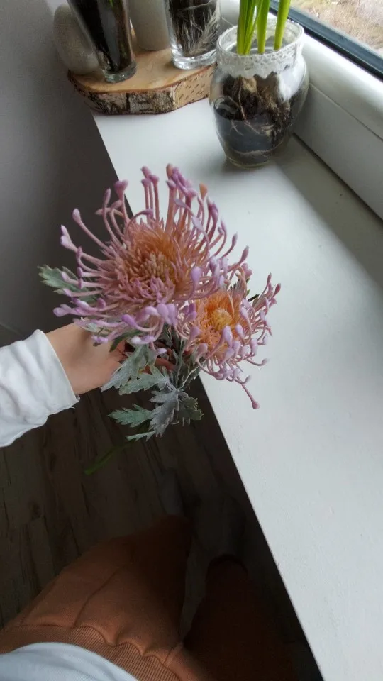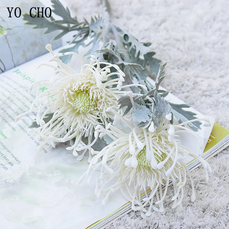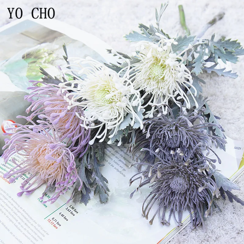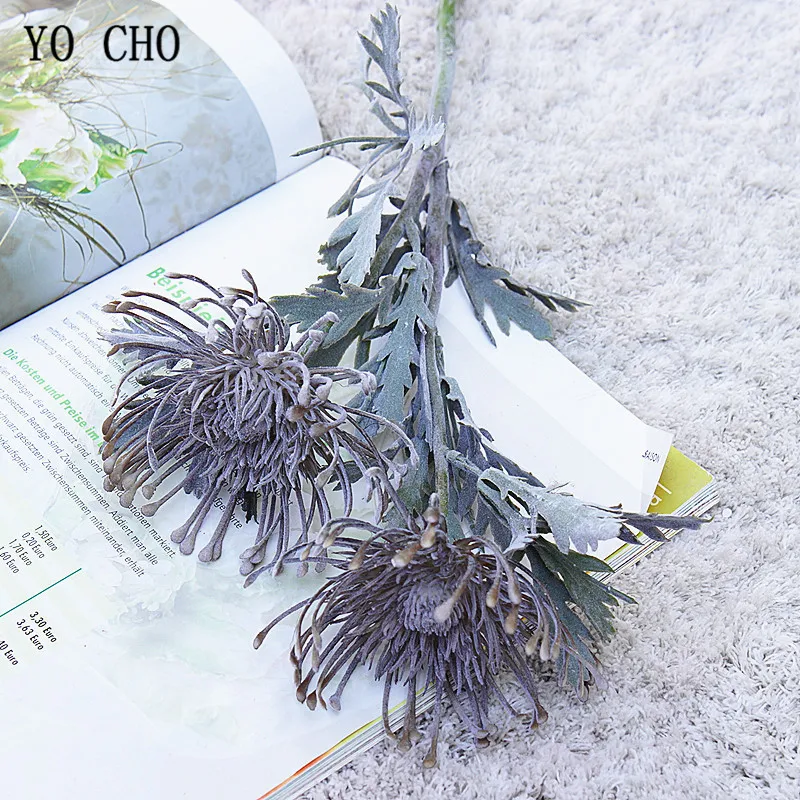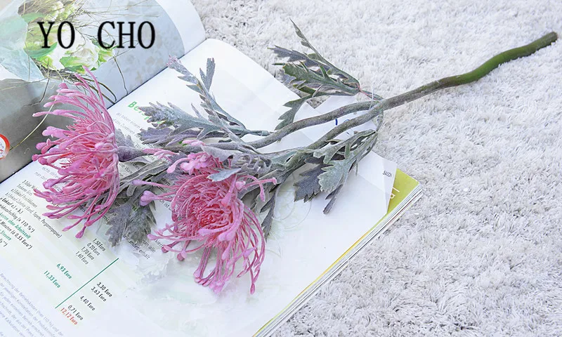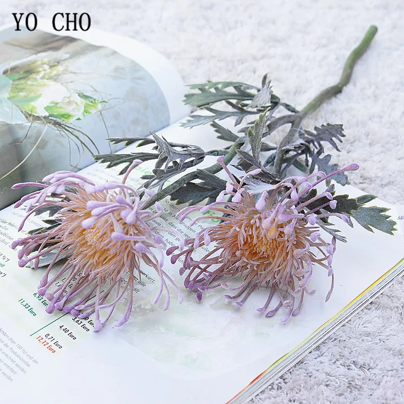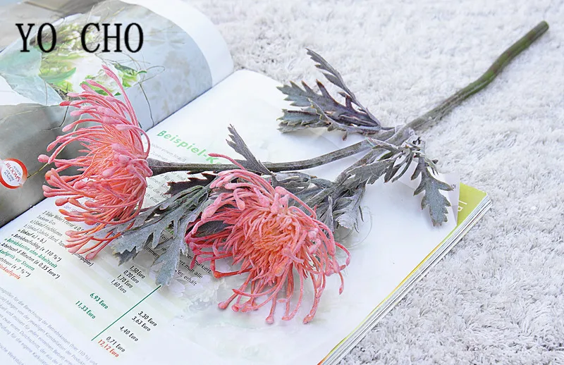 YO CHO искусственный цветок Leucospermum, свадебное украшение, короткая ветка, вертушка, 2 вилки, булавка, цветок для дома, искусственный цветок