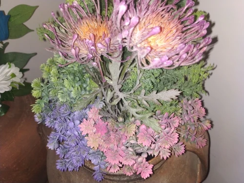 Цветочки, как на картинке, но в жизни выглядят довольно блекло, как будто с налетом пыли... Пришли быстро, для тех, кто любит неяркий стиль - вполне ..