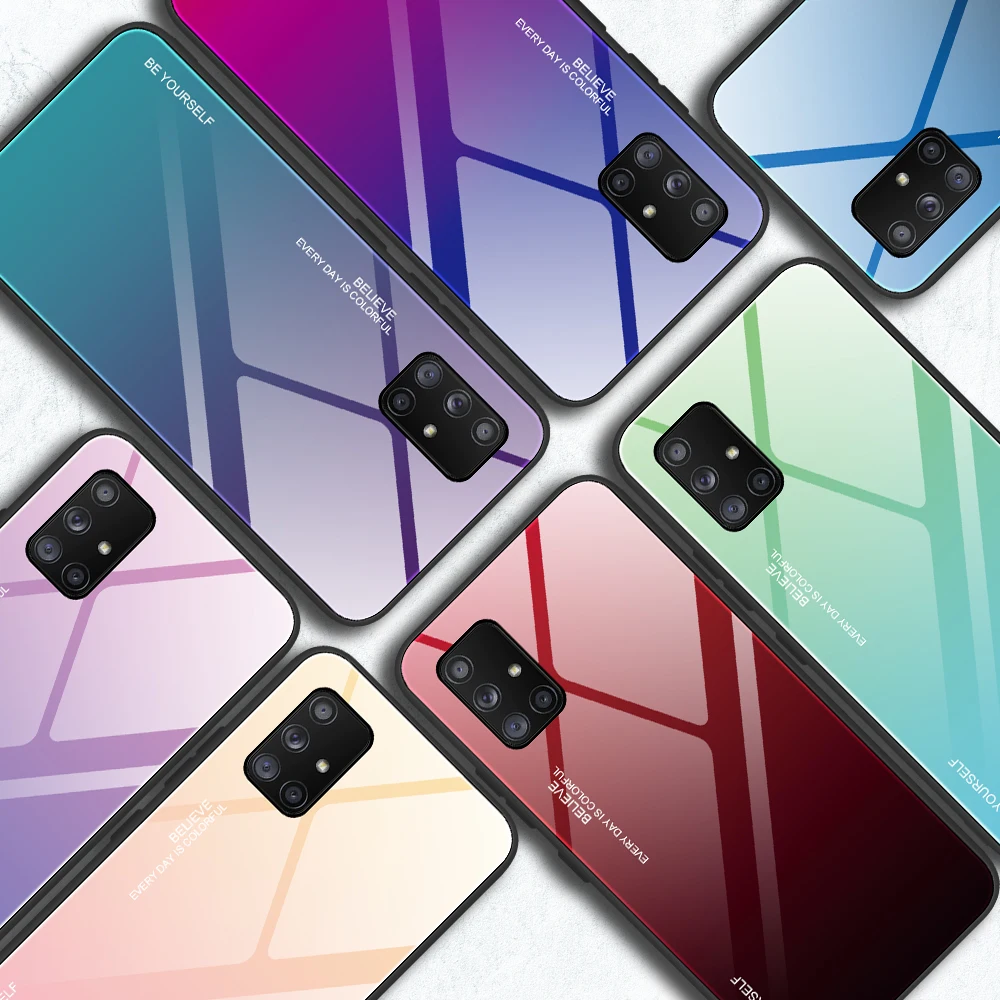 Градиентный чехол из закаленного стекла для Samsung Galaxy A51 A31 A71 A42 5G A11 A01 A81 A91, роскошная задняя крышка для Samsung A 51 31 71 11, чехол