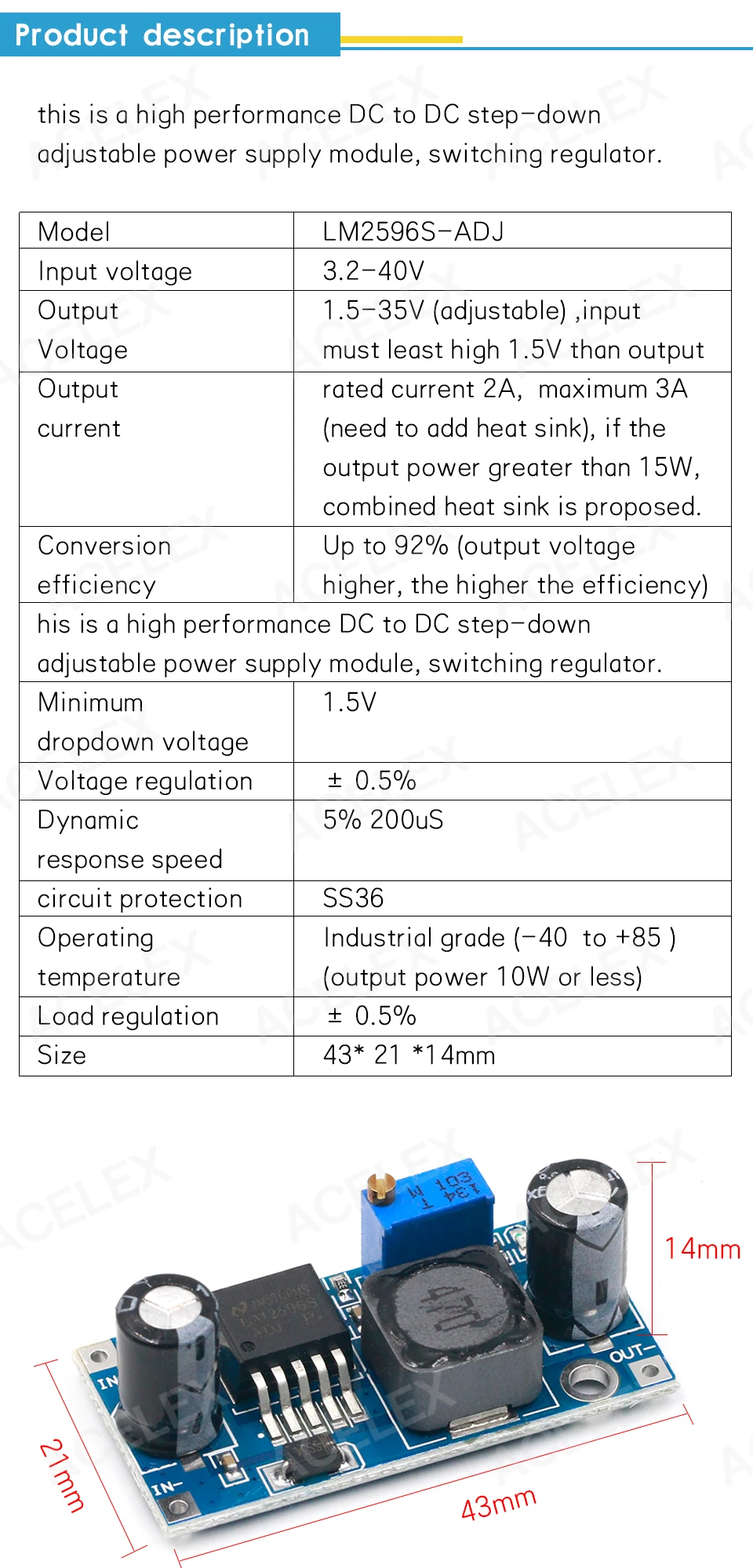 Понижающий модуль питания LM2596 LM2596S ADJ DC-DC 5 В12 В24 В, регулируемый регулятор напряжения 3 А