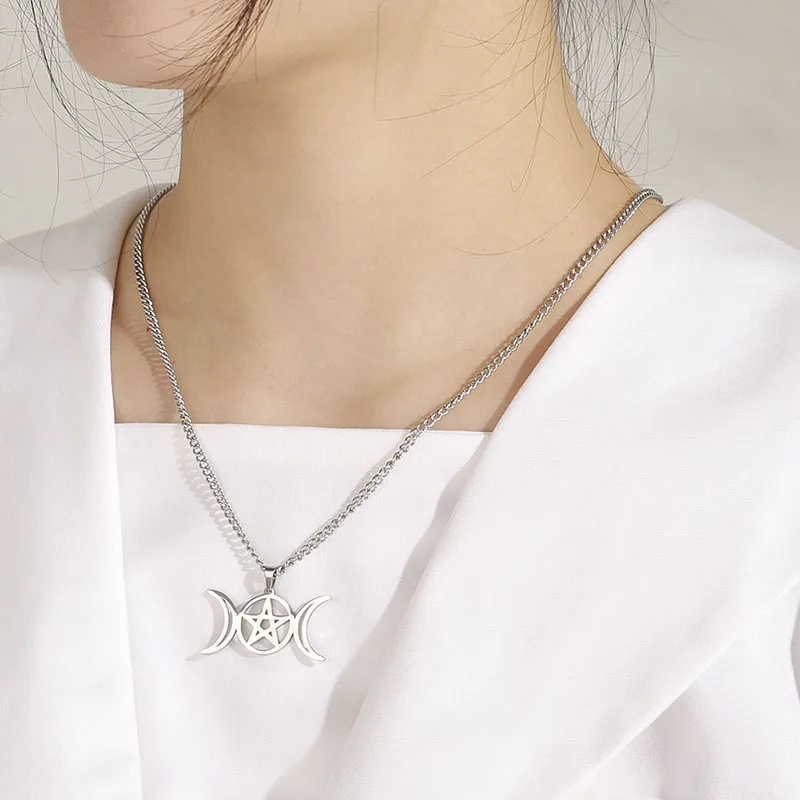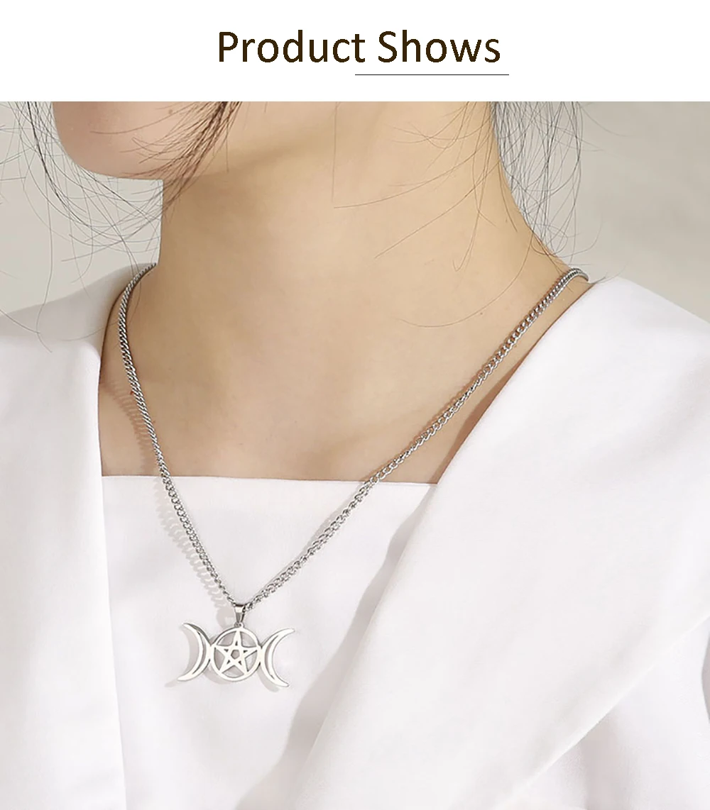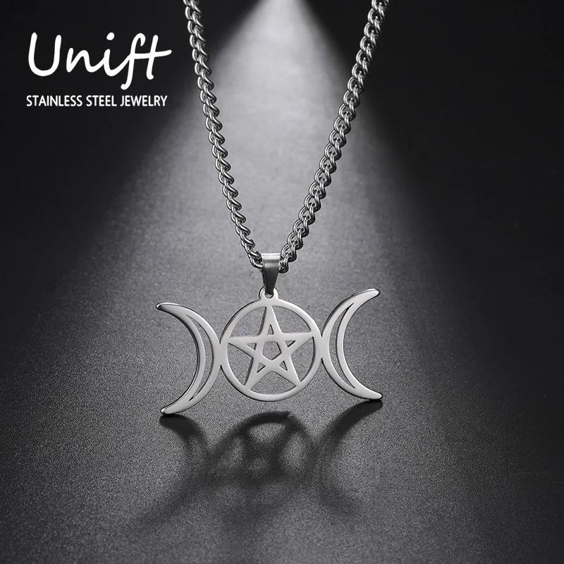 Ожерелье богини Unift с тройной луной для женщин и мужчин, Викка, пентаграмма Magic Сверхъестественное Амулет, ожерелья, ювелирные изделия из нержавеющей стали