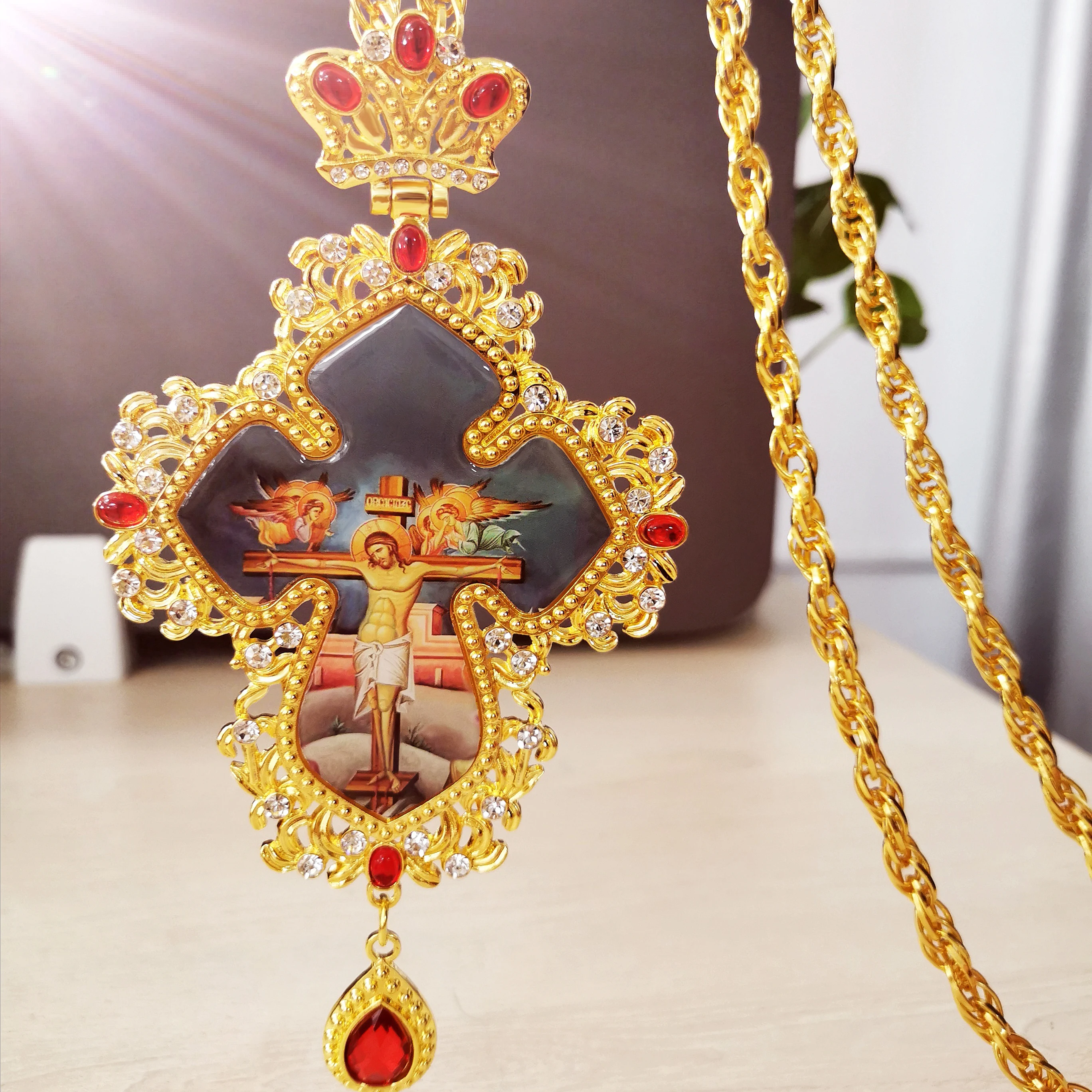 Высокое качество, крест, ортодоксальный Иисус, подвески-кресты стразы, крест, цепь, золотые религиозные украшения, молитва пастора