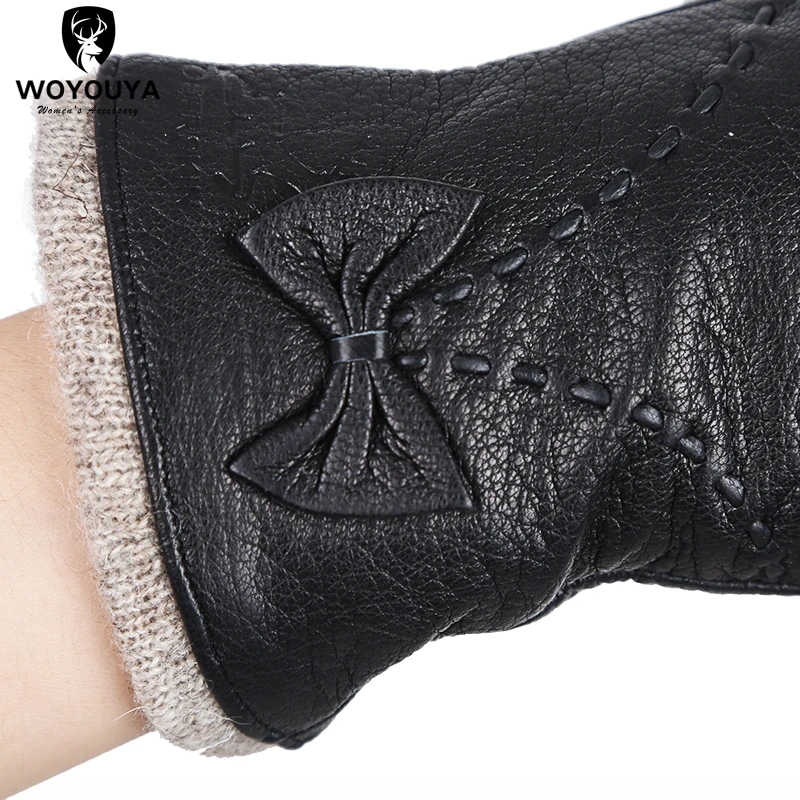 Модные вязаные женские кожаные перчатки, женские перчатки из овчины с узором оленьей шкуры, теплые женские зимние перчатки-8030