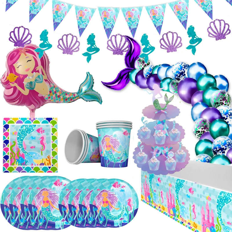 Украшение для стола Русалочки, украшение для маленькой Русалочки, воздушный шар с цифрами хвост Русалочки для девочек 1, 2, 3, товары для дня рождения вечерние вечеринки