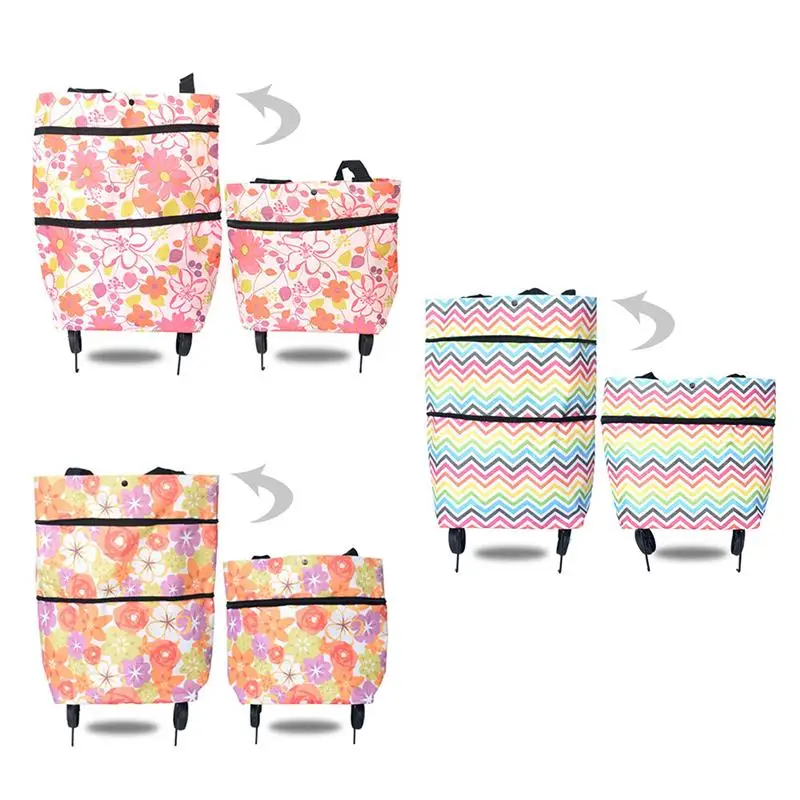 Складная сумка-тележка с колесами, переносная тканевая корзина из ткани Оксфорд, многоразовые продуктовые сумки, сумка для хранения покупок