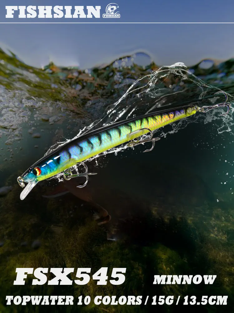 Информация о товаре: Бренд: FISHSIAN Модель приманки: гольян Тип приманки: жесткая рыболовная приманка Вес приманки: 15,4 г Длина приманки: 135 мм Глубина погружения: 0,5-1,5 м Плавучесть: погружение Крючки: оснащены антикоррозийными крючками Глаза: 3D рыбьи глаза Кольца: три Цвета: 10 цветов