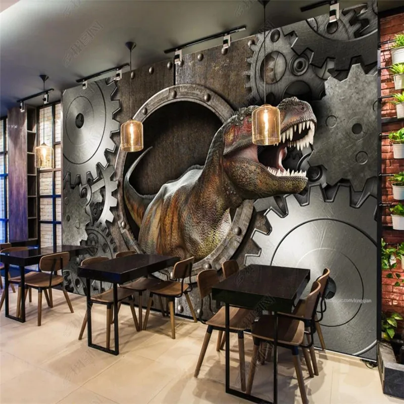 Изготовленная на заказ Ретро промышленная ветровая металлическая Шестерня динозавр бар КТВ фон настенная бумага 3D музыка Клуб Ресторан Декор настенная бумага 3D