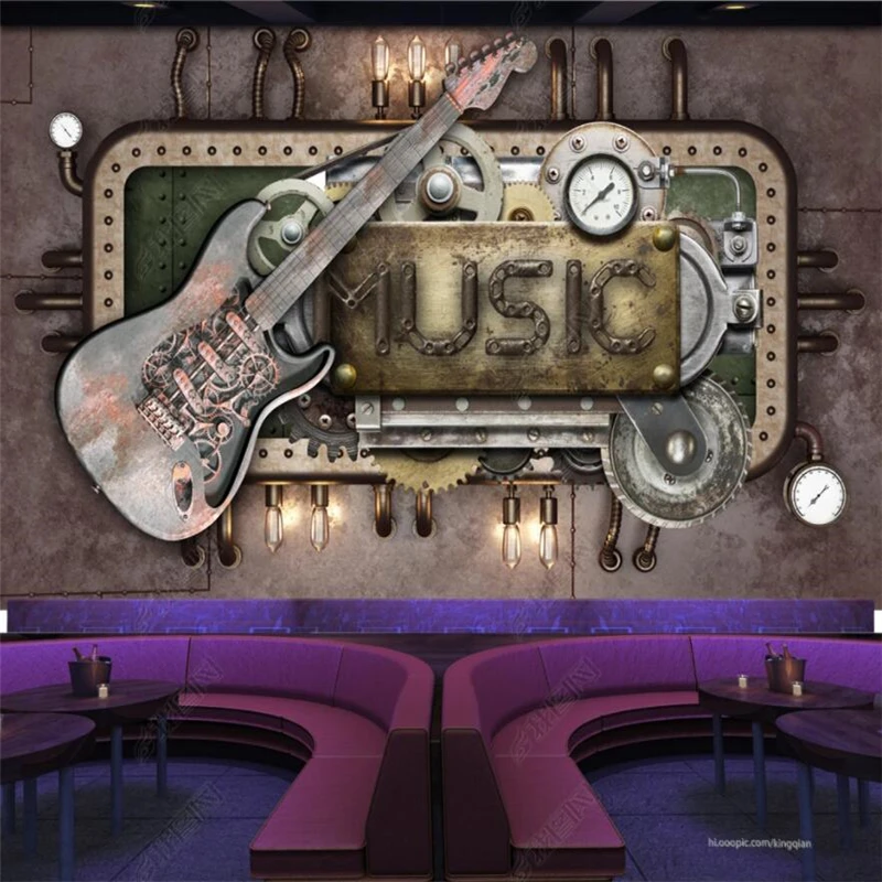 3D металлическая промышленная ветровая Шестерня механический Рог обои гитара музыкальный бар КТВ Ресторан Бар фон Настенные обои
