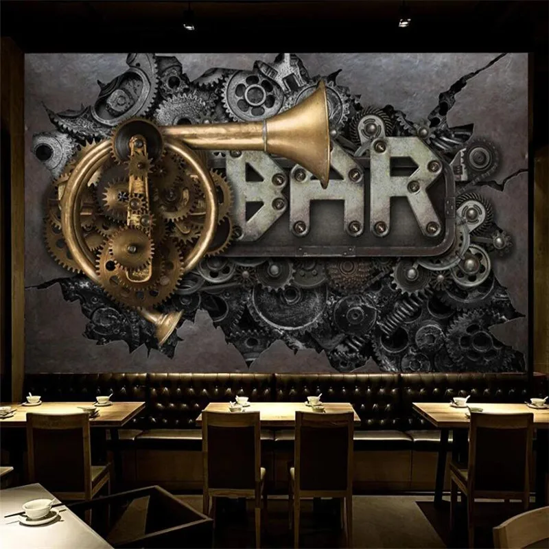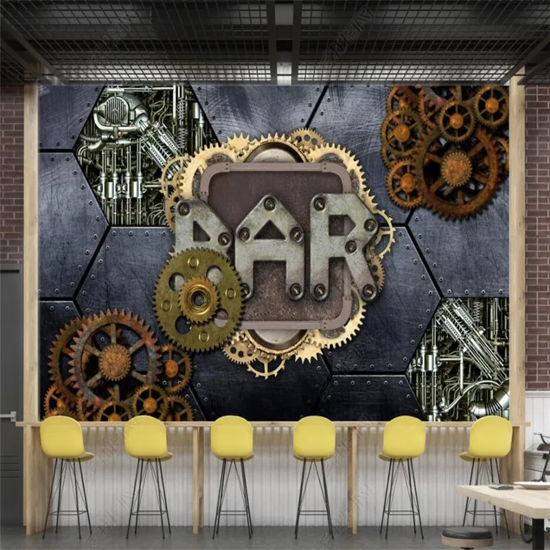 Пользовательские европейские и американские потертые ретро металлические шестерни настенная бумага 3D бар КТВ промышленный Декор Фон настенная бумага 3D