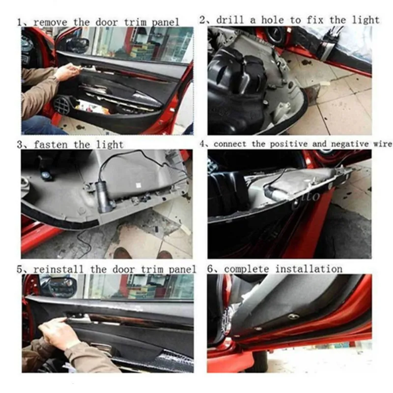 -100% новый бренд. -Светодиодный Тип: светодиодный чип. -Материал: АБС + алюминиевый сплав. -Сертификация внешнего тестирования: CE. -Срок службы: более 90000 часов. -Номинальное напряжение: DC 9V-DC 14В. -Рабочая температура:-40 ℃ - 105 ℃. -Потребляемая мощность: 5 Вт (Каждая СВЕТОДИОДНАЯ лампа). -Ведущая тенденция источников автомобильного освещения. -Отсутствие загрязнения, отсутствие шума, отсутствие электронных помех. -Высокомощный светодиодный и высокоэффективный и энергосберегающий. -Специальные Особенности: 3D лазерный светильник, дверной светильник, приветственный светильник. -Устанавливается просто, хорошо выглядит и полезен, низкое энергопотребление. -Этот список предназначен для пары удивительных дверных ступенчатых лазерных прожекторных теневых ламп. Как установить? 1. Снимите отделочную панель двери. 2. Просверлите отверстие, чтобы зафиксировать светильник. 3. Закрепите светильник. 4. Подключите положительный и отрицательный провод. 5. Переустановите дверную отделочную панель. 6. Полная установка. Посылка: 1 сверла с отверстием. 2x двери автомобиля светодиодный лазерный проектор Тени светильник.