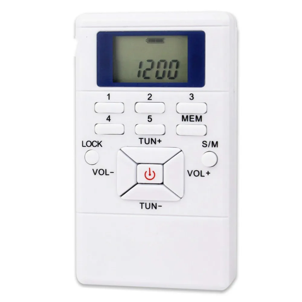DSP Радио FM стерео карманный радиоприемник для больших встреч с наушниками портативный fm-радио Y4305BЭто портативное радио использует технологию обработки цифровых сигналов, используя программное обеспечение, достигающее беспроводного радио, все функции, получая более стабильные, конечно, также очень прост в эксплуатации. И оснащен наушниками, которые очень подходят для прослушивания fm-трансляции и больших встреч.Особенности:Функции DSPВысокая чувствительность и селективность с отличным приемомFM Частотный диапазон 60 ~ 108 МГцТри способа выбора станции: память, автоматический поиск, ручная работаОн может хранить 5 самых любимых радиостанций, нажмите 1-5 клавиш, чтобы быстро выбрать станцииОдин клавишный переключатель на fm-стереоС 24-часовой цифровые часы30 уровень регулировки громкостиПереключатель блокировки для предотвращения случайной работыСпецификация:Частотный диапазон FM: 60 ~ 108 МГцЧувствительность: >3.5uVОтношение сигнал-шум: >45 дБСтерео разделение: >32 дБИсточник питания: 2 батарейки АААРазъем для наушников: 3,5 ммНастройка шаг: 0,1 МГцВстроенный динамик: нетРазмер: 92 мм x 54 мм x 15 мм/3,6 x 2.1x 0.6inВес: 40 г/1,4 ozПосылка включает в себя1 х fm-радио1 x наушники-вкладыши1 x ремешок1 x Руководство пользователя