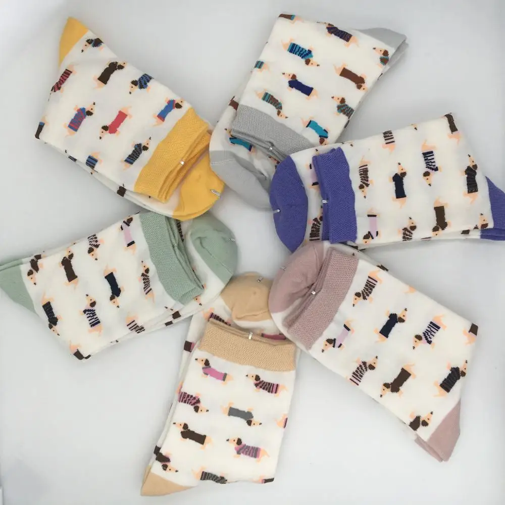 Носки женские с изображением животных, цветные милые хлопковые носки с изображением сосисок, мультяшных персонажей, пары, девушек, весенние и летние носки с изображением зоопарка
