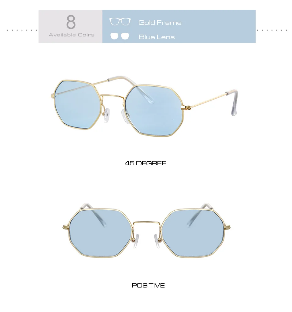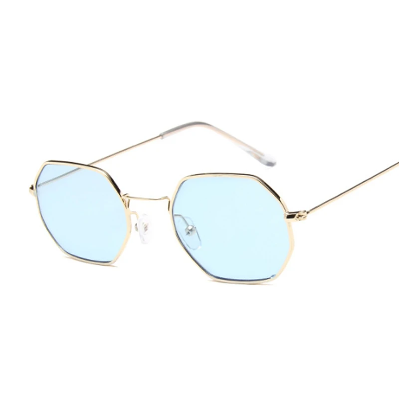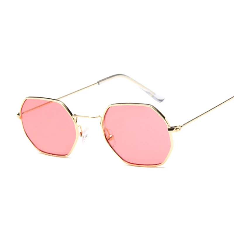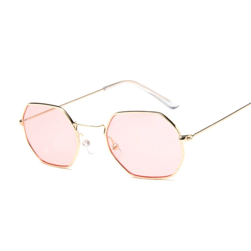 Солнечные очки в винтажном стиле женские, небольшие квадратные солнцезащитные аксессуары в розовой многоугольной оправе, с металлической оправой, с зеркальными линзами цвета океана