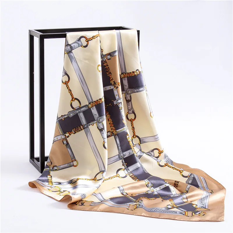 Квадратные шелковые шарфы, женские, 90*90 см, атласные, Hijab шарф ...