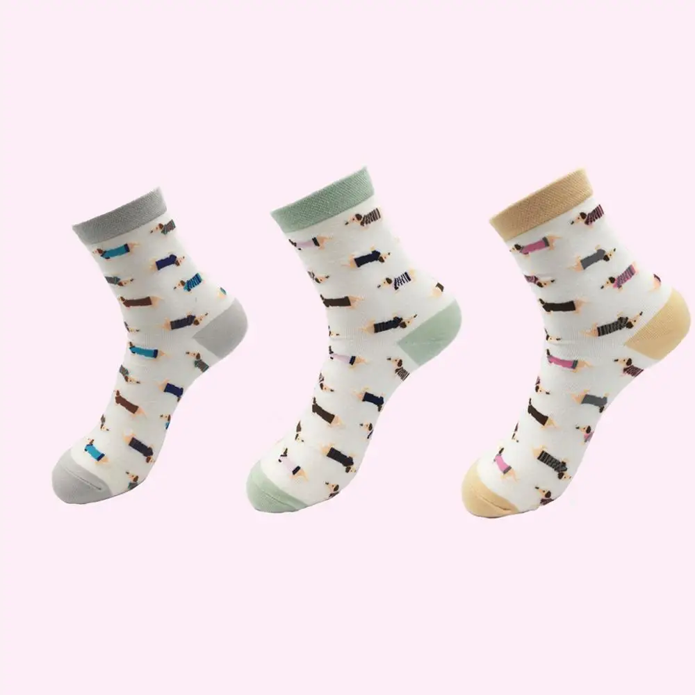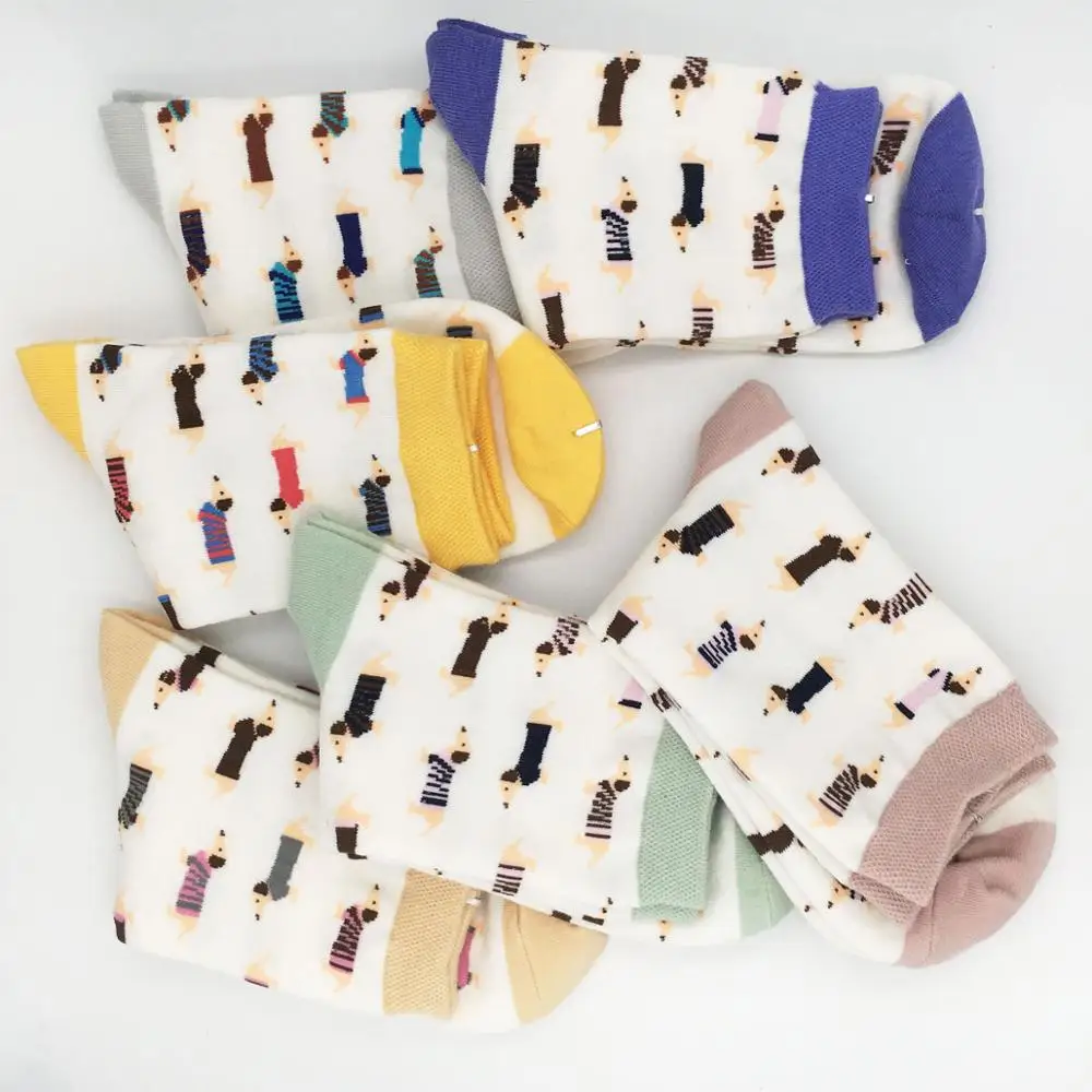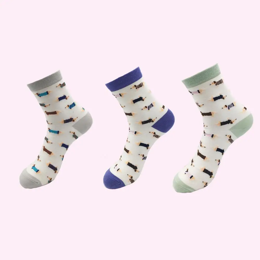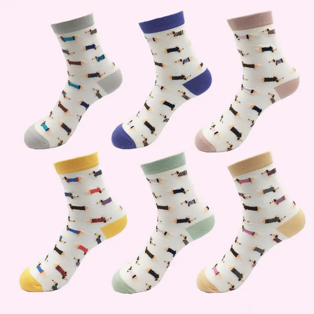 3 пары, женские носки с животными, цветные милые хлопковые носки с изображением колбасы, собаки, пары, женские носки для девочек на весну и лето, носки с изображением зоопарка