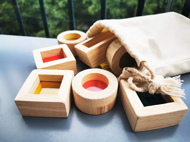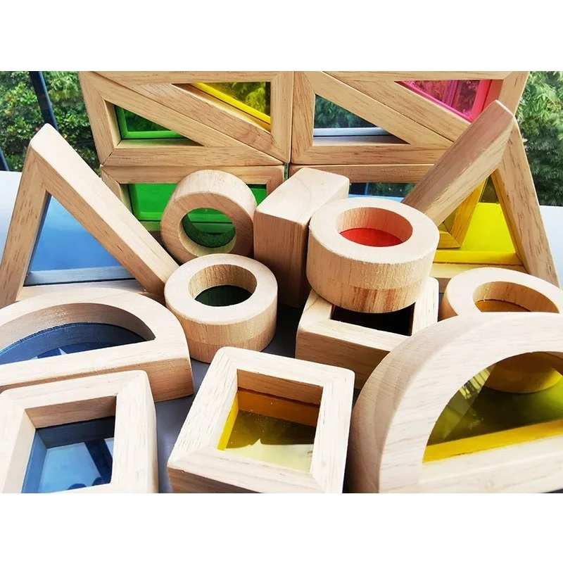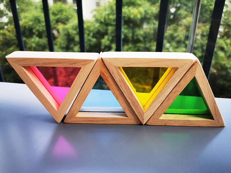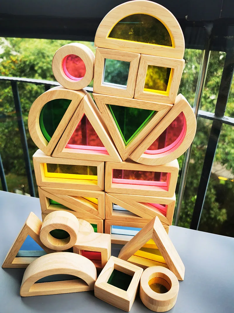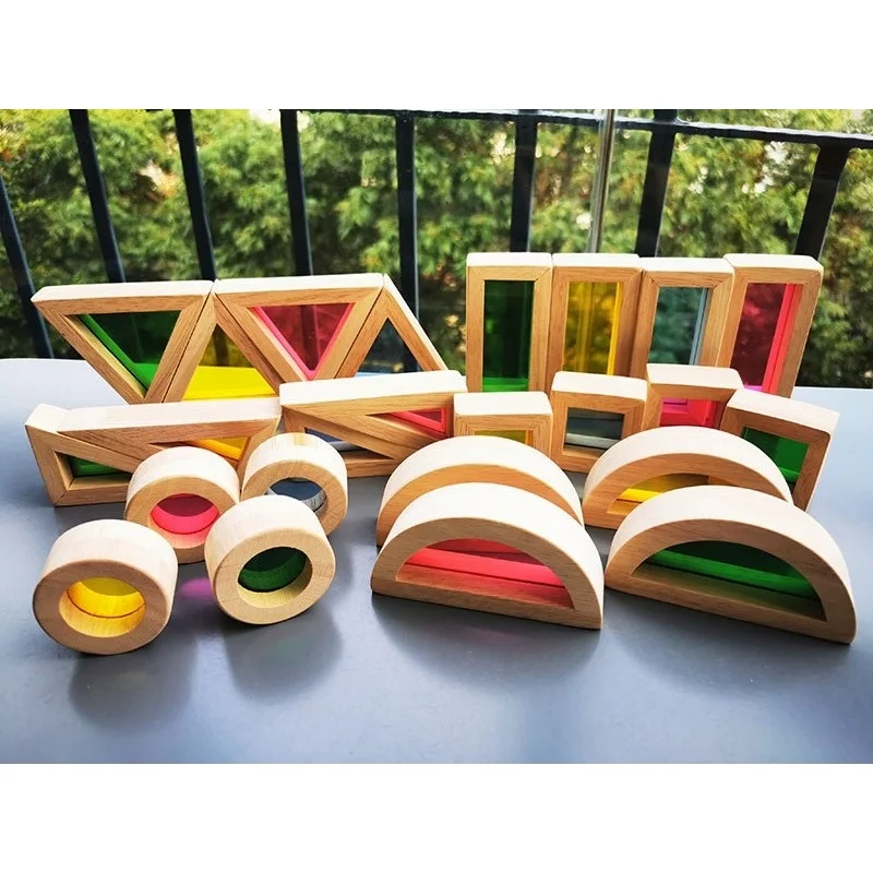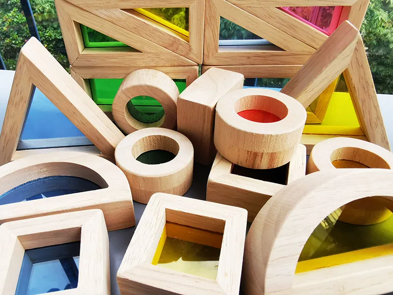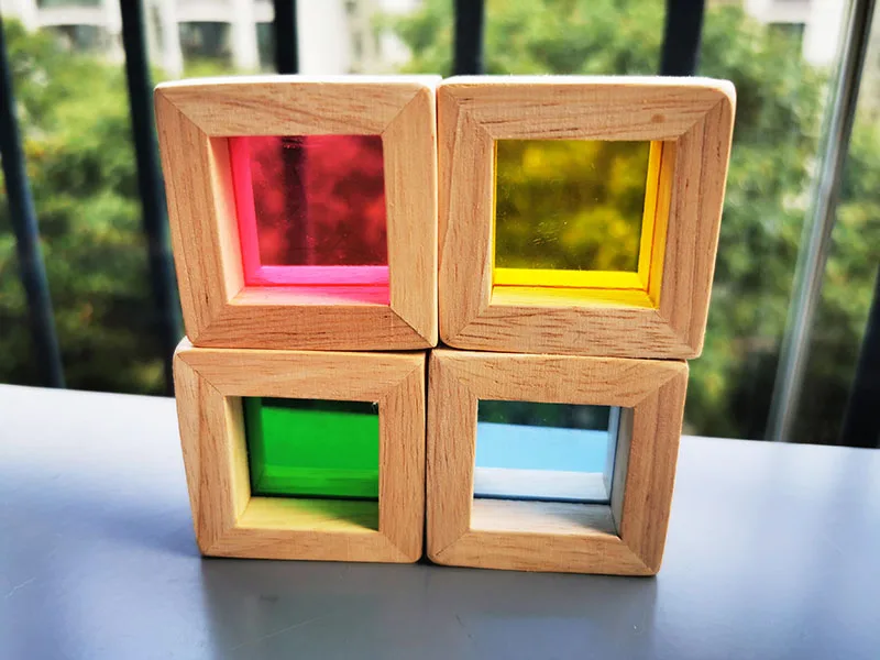 Детская деревянная игрушка Монтессори, сенсорные радужные зеркальные блоки, стандартный акриловый штабелер, обучающая игра