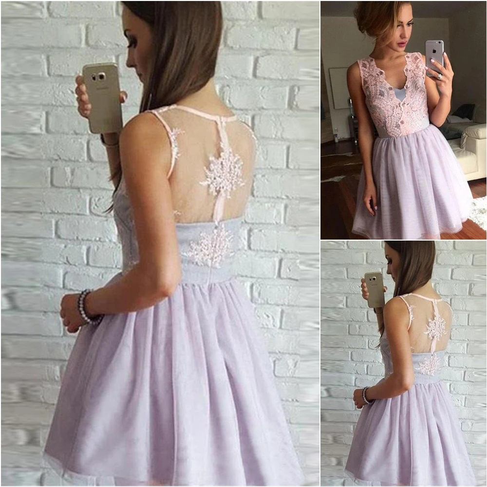 Без рукавов Выпускные вечерние платья выше колена Мини выпускное пл...