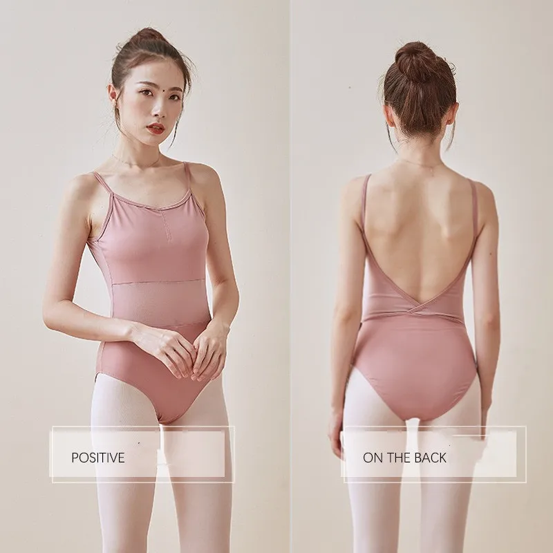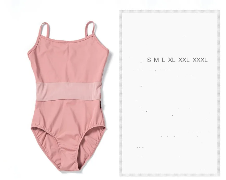 Женский трико на тонких бретелях, балетные костюмы, гимнастическая Коралловая майка с сеткой на талии, хлопчатобумажный Боди без рукавов