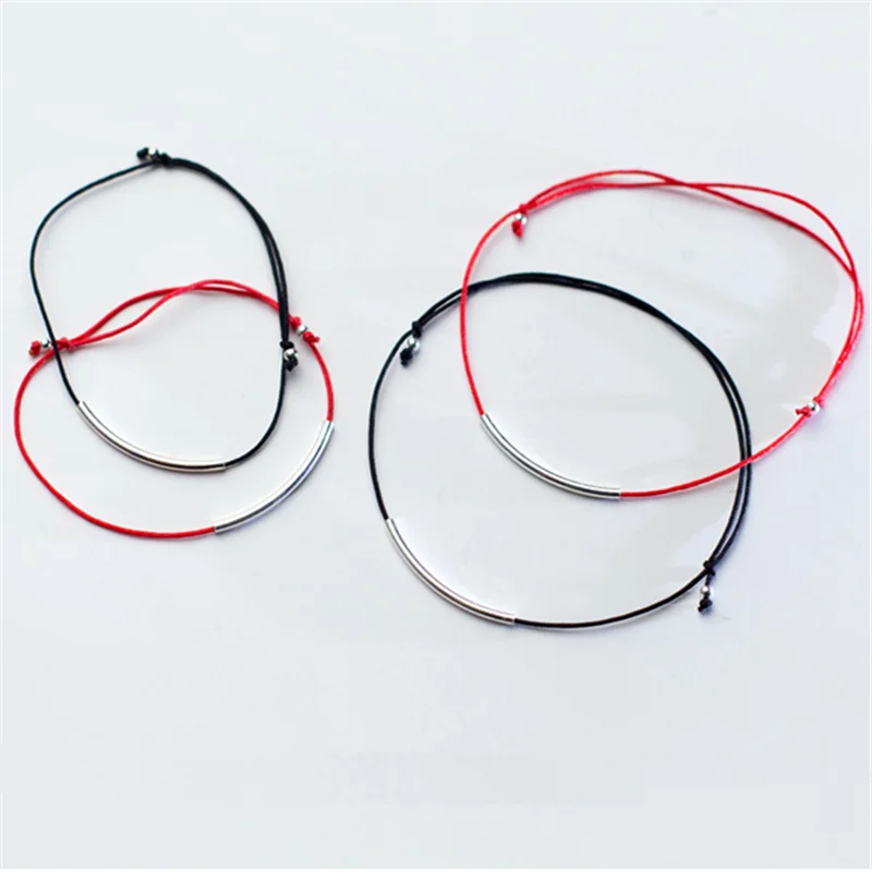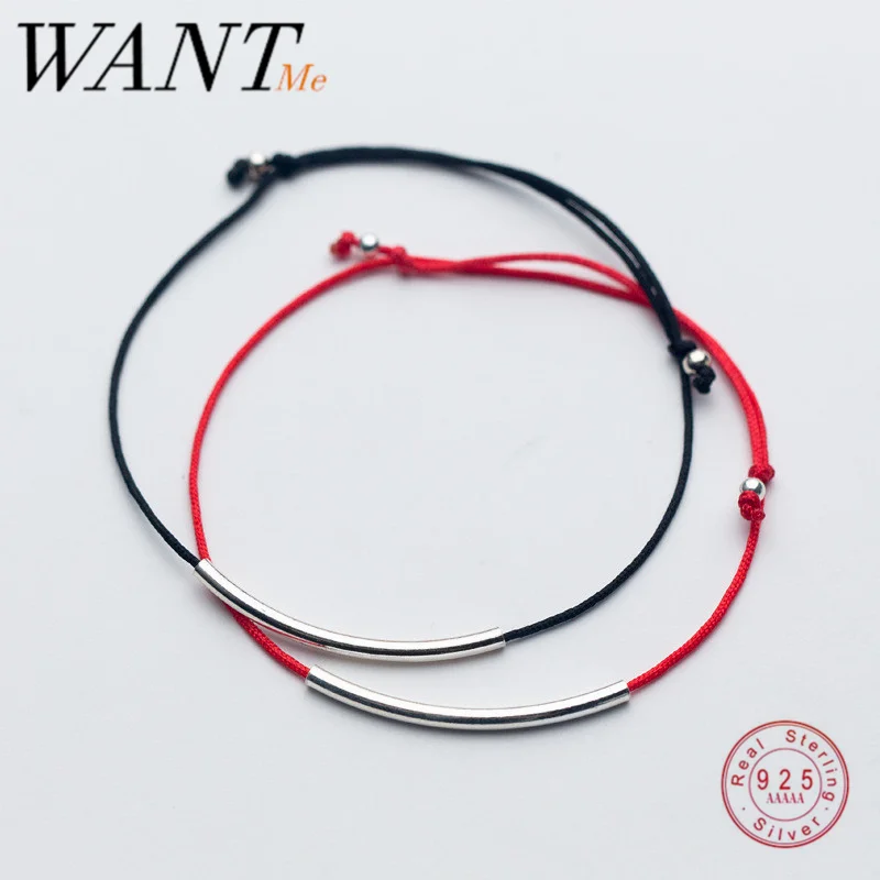 WANTME Настоящее серебро 925 пробы длинный изогнутый браслет из бисера Красный Черный веревочный тибетский буддийский Будда любовь счастливый женский браслет