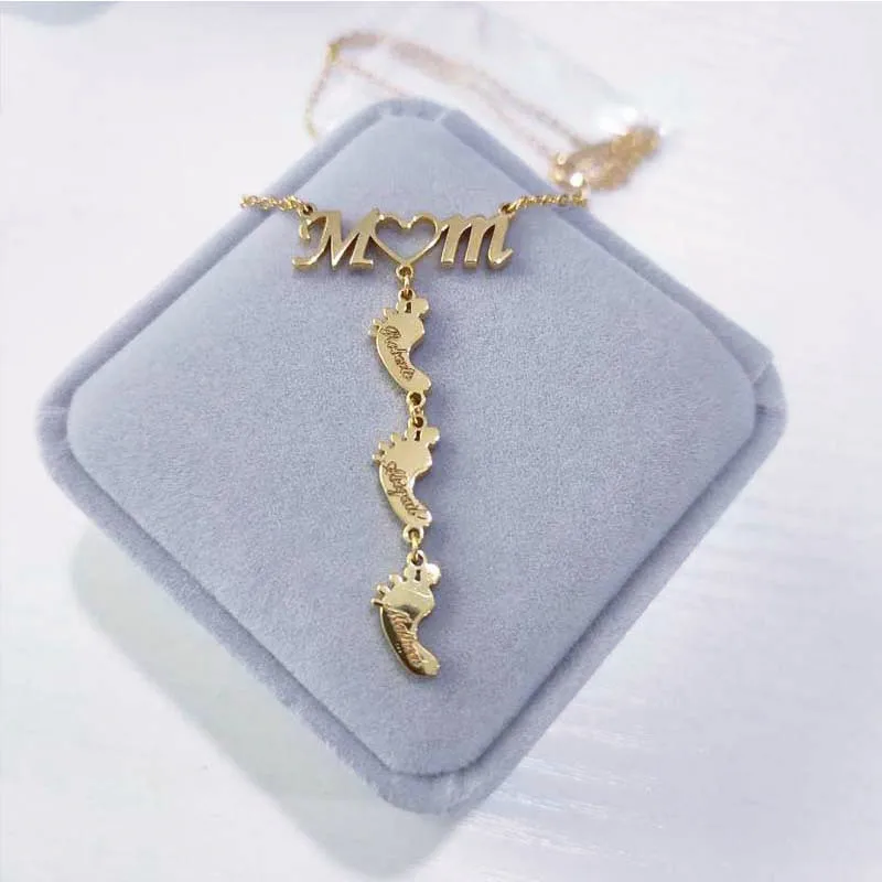 ShapeStainless Steel Personalized Custom Feet MOM Necklaces