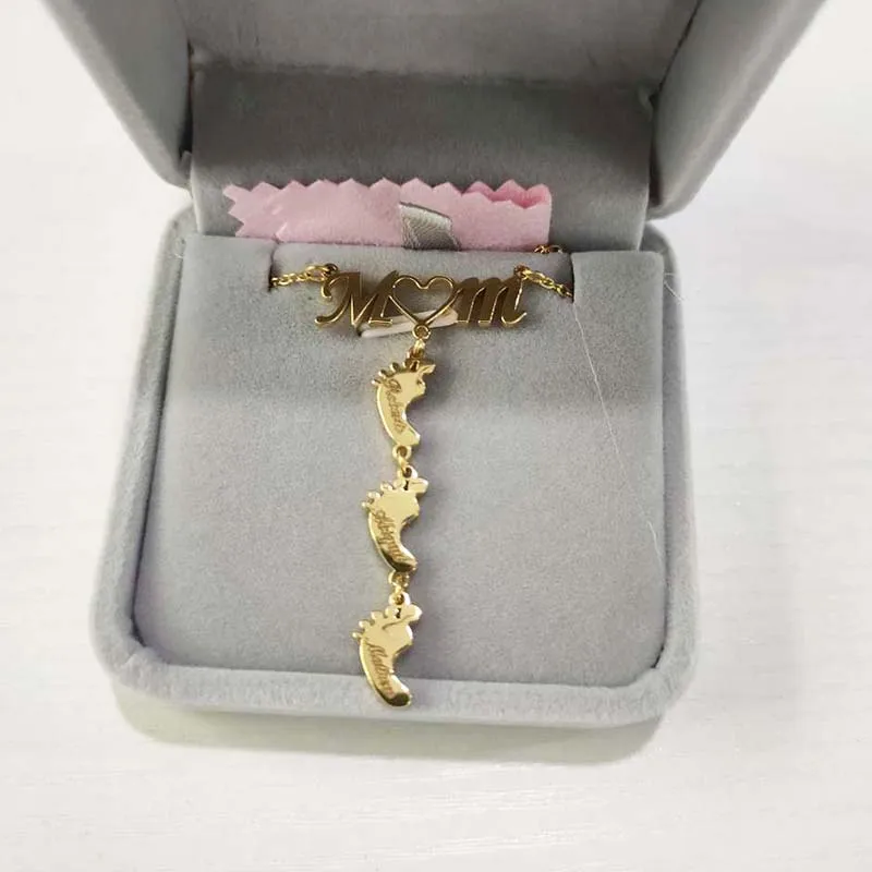 Персонализированные детские ножки с именем мамы, ожерелье из нержав...