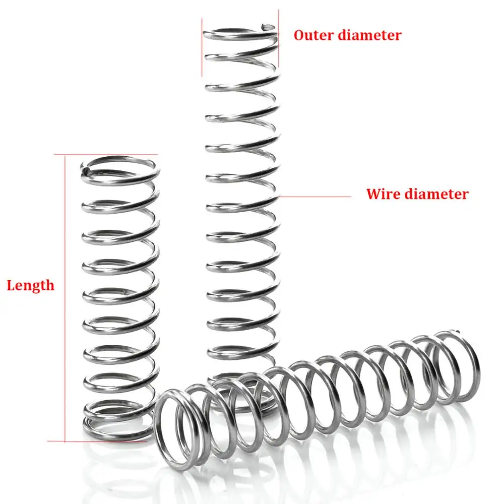 Пружина сжатия 0,8 мм, 10 шт., 304 пружины A2, нержавеющая сталь, д...