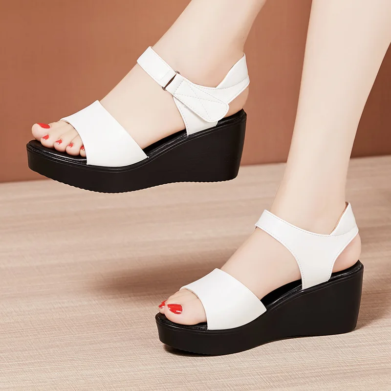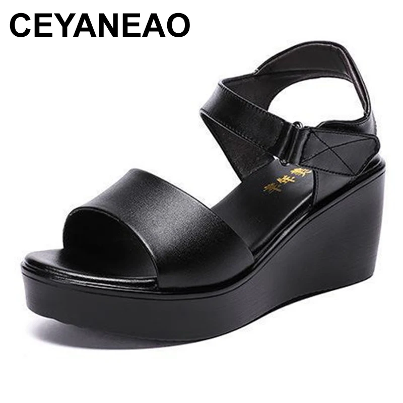 Женские босоножки на танкетке CEYANEAO, черные, красные, белые, на среднем каблуке 6 см, удобные, для лета, 2020