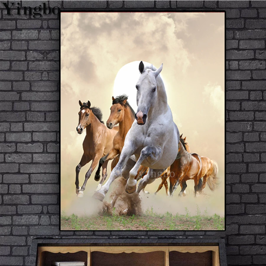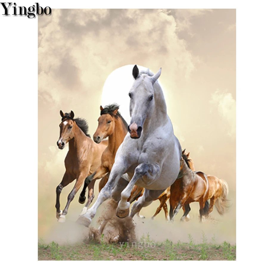 Полностью квадратная круглая дрель 5D DIY Алмазная Картина лошадь бег животное ферма Алмазная вышивка крестиком Набор diy Алмазная мозаика