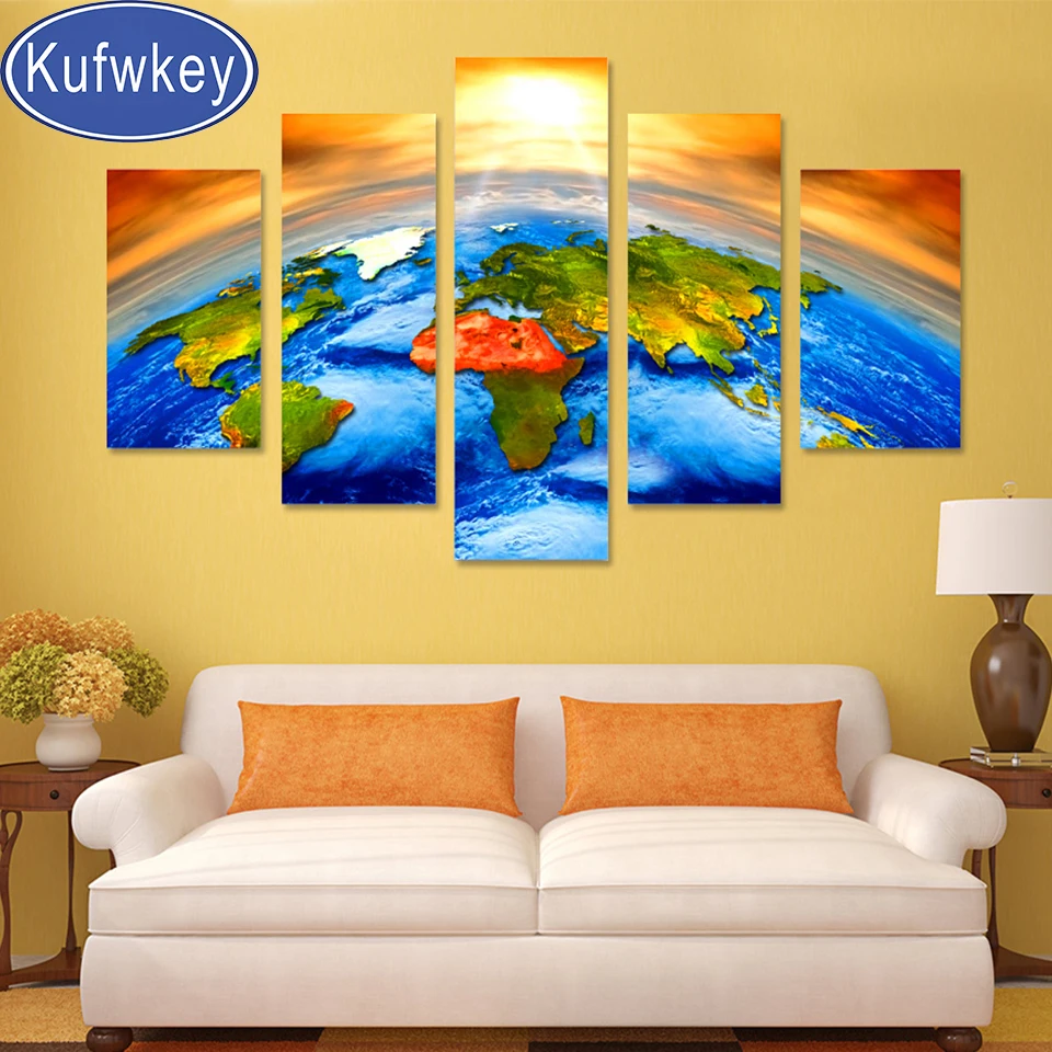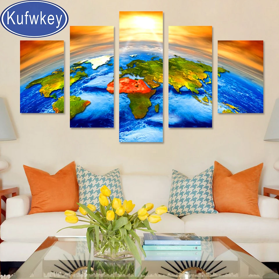 Красочная карта мира Земли Алмазная картина 5 панелей Алмазная вышивка полная круглая мозаика 3d вышивка крестиком узоры офисный декор,