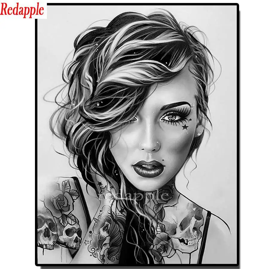 Властная девушка тату алмазная живопись полный квадратный круглый сверло мозаика пазл картина Стразы Вышивка черно-белое искусство
