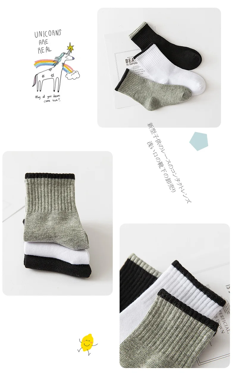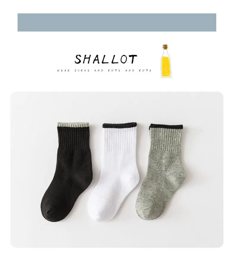5 пар/лот, Классические однотонные детские носки для детей от 1 до 12 лет черно-белые носки для студентов, носки весна-осень-зима-Материал: 80% хлопок, 15% полиэстер, 5% спандекс