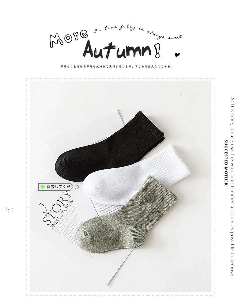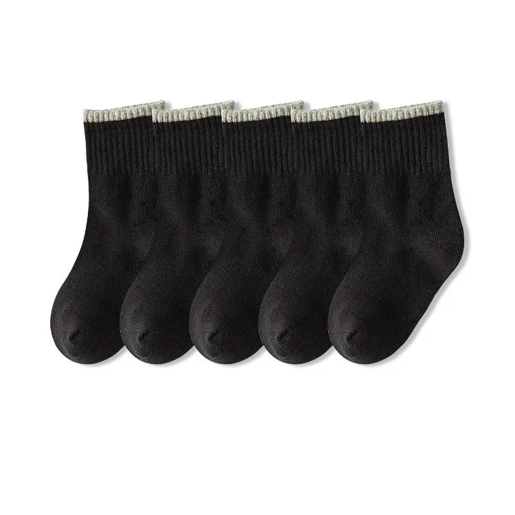 5 парыЛот, Классические однотонные детские носки для возраста от 1 до 12 лет черно-белые носки для студентов, весенне-осенние зимние носки
