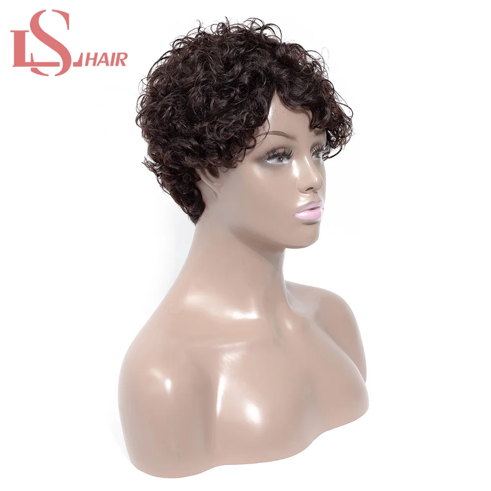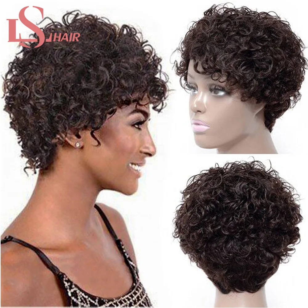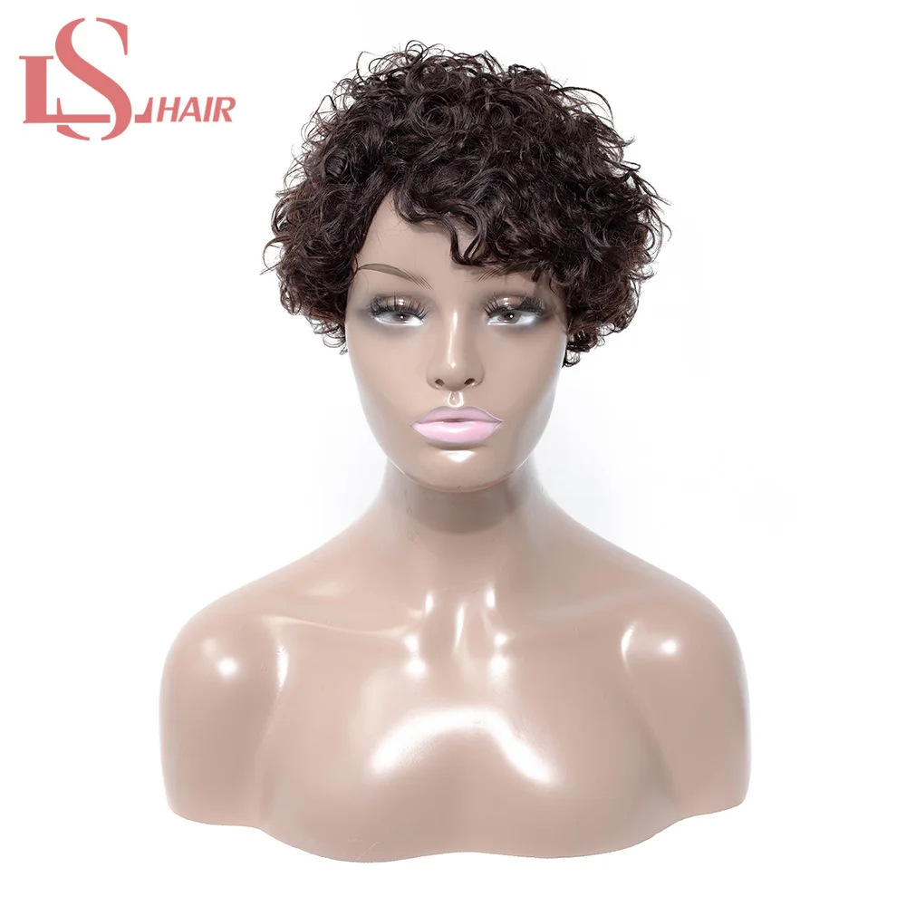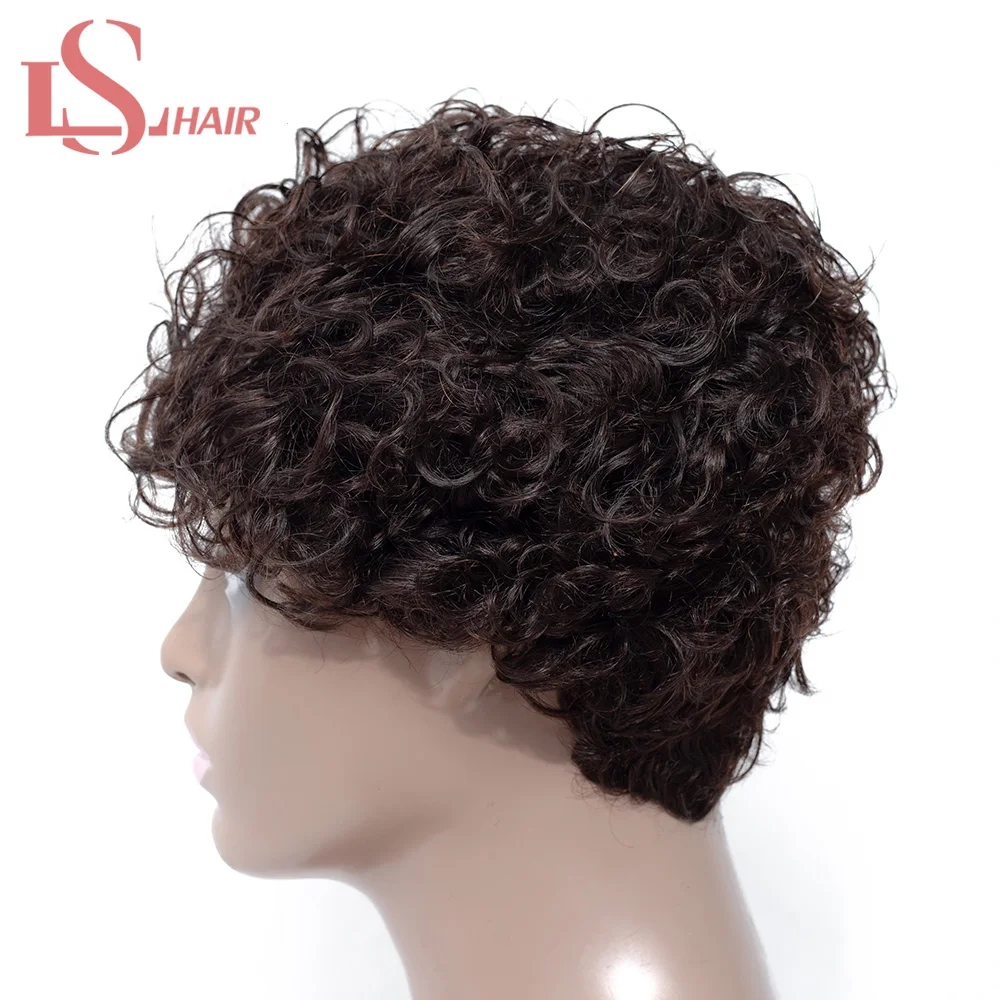 Парик LS HAIR короткий кудрявый Боб, бразильские кудрявые человеческие волосы для женщин, натуральные черные волосы не Реми, плотность 130%, Кудрявые Парики