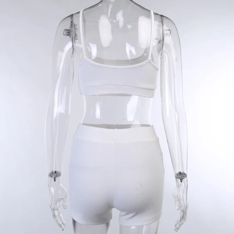 Женский комплект из двух предметов FSDA, белый короткий топ на тонких бретелях и шорты с вышивкой, на лето