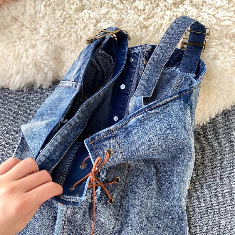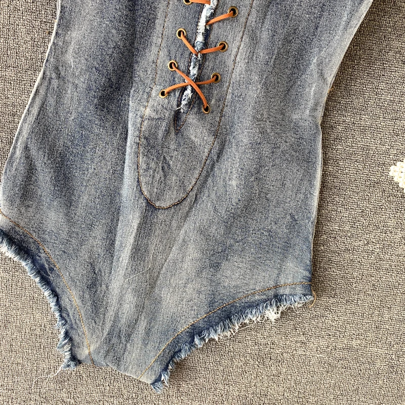 Комбинезон женский джинсовый, с высокой талией, на шнуровке, летний