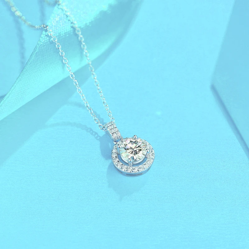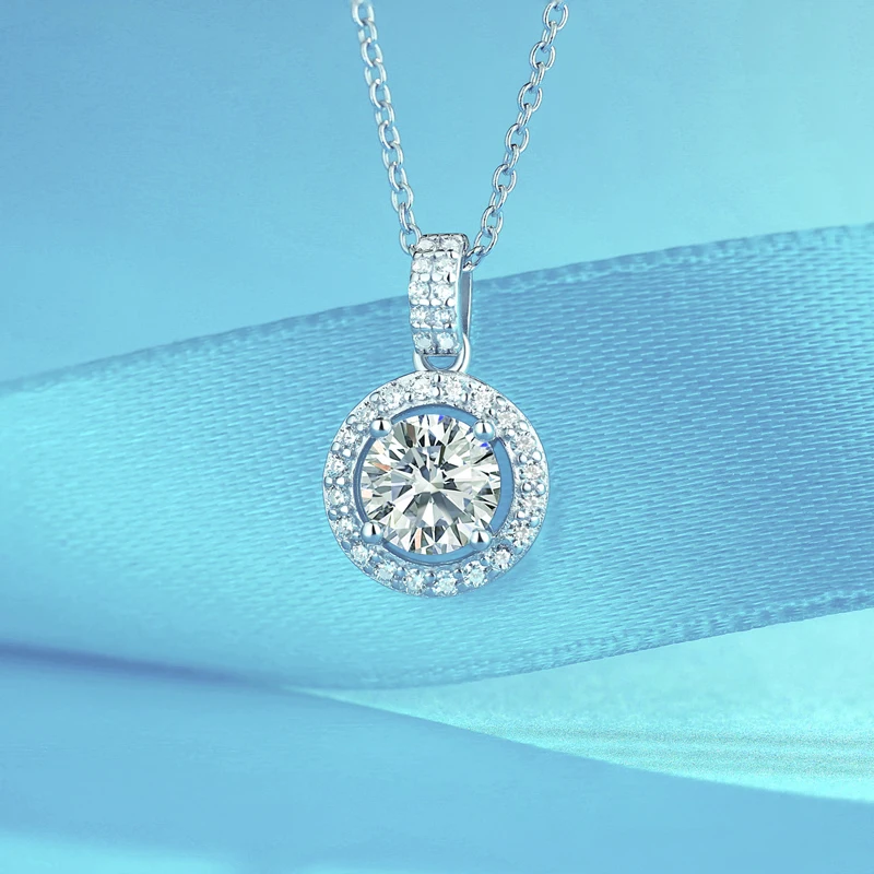 Ожерелье с круглой подвеской из серебра 925 пробы с муассанитом