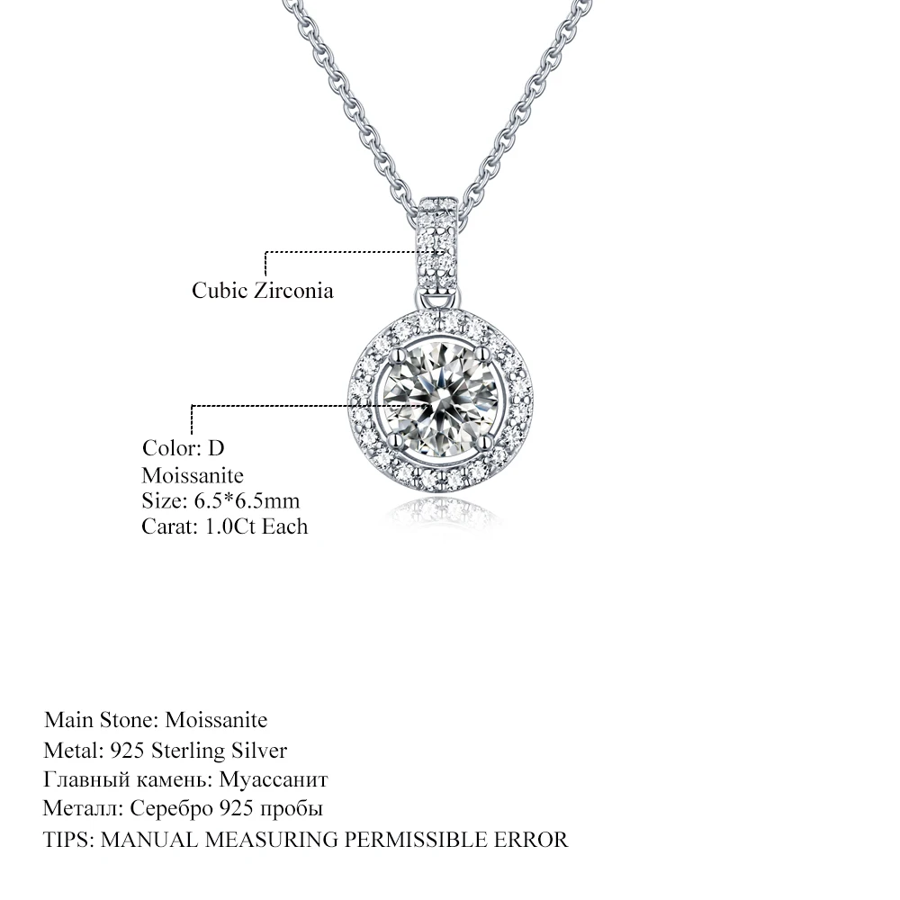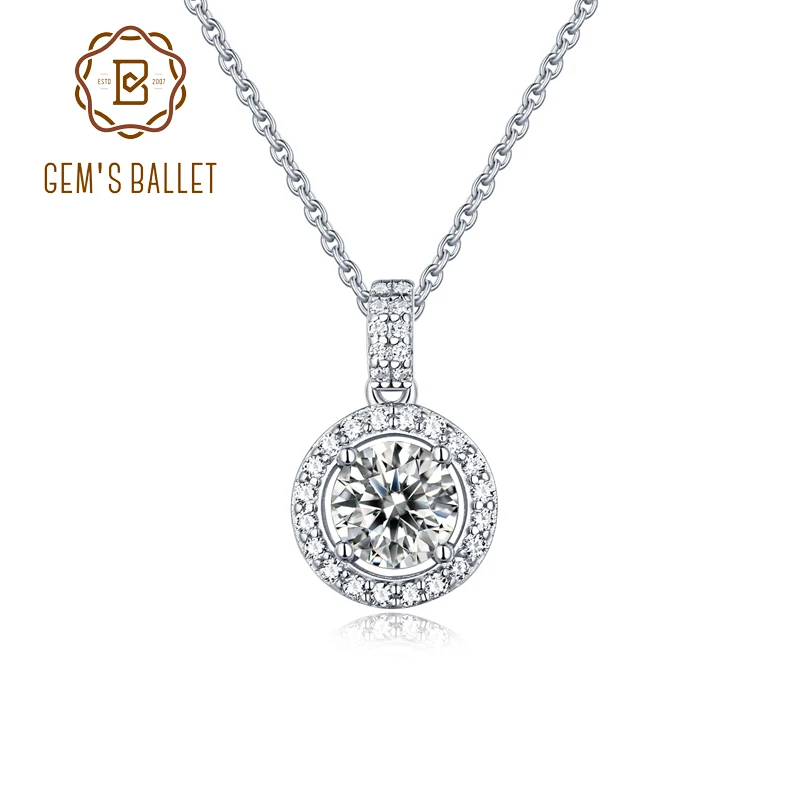 Ювелирное изделие GEM'S BALLET из стерлингового серебра 925 пробы, украшение из муассанита, 1.0Ct, D Цвет, танцевальный камень, Муассанит, бриллианты, Круглый Кулон, Ожерелье
