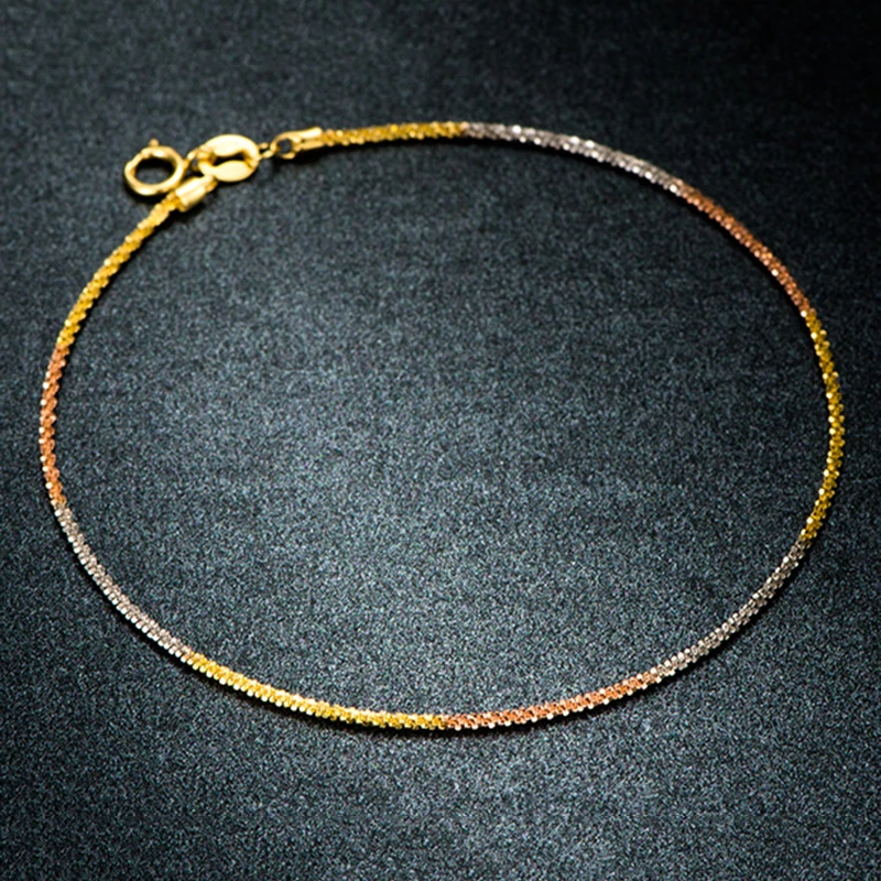 Браслет-цепочка женский из 18-каратного золота, 17 см, 18 карат, желтоерозовоебелоемногоцветное золото