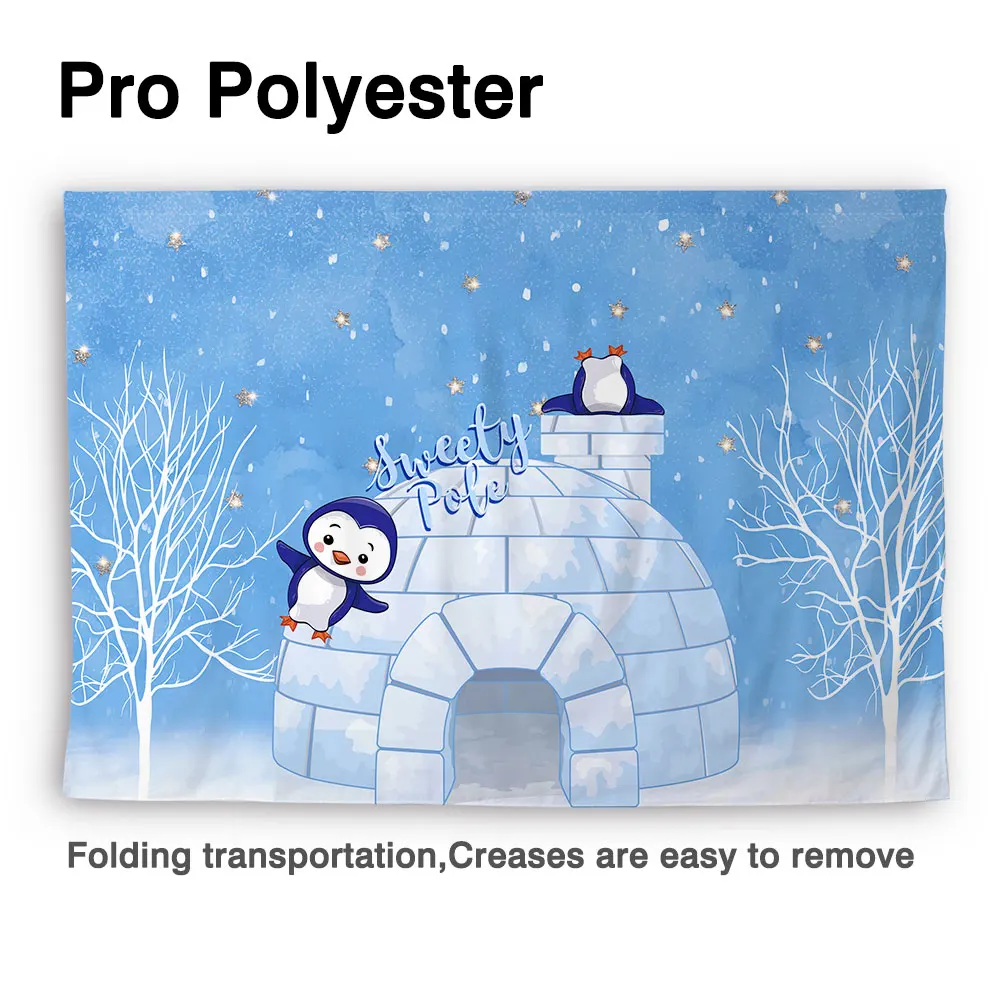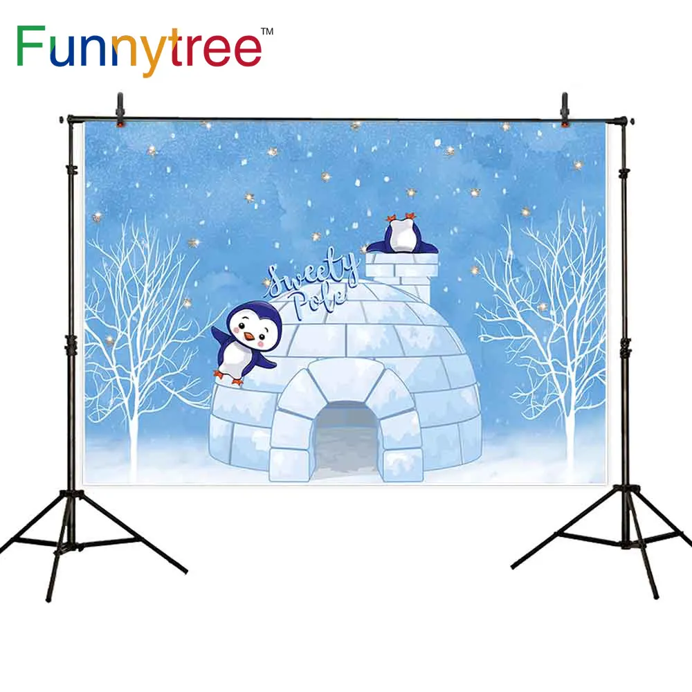 Фон Funnytree для детской фотосъемки с изображением голубого неба, пингвина, снежного дерева