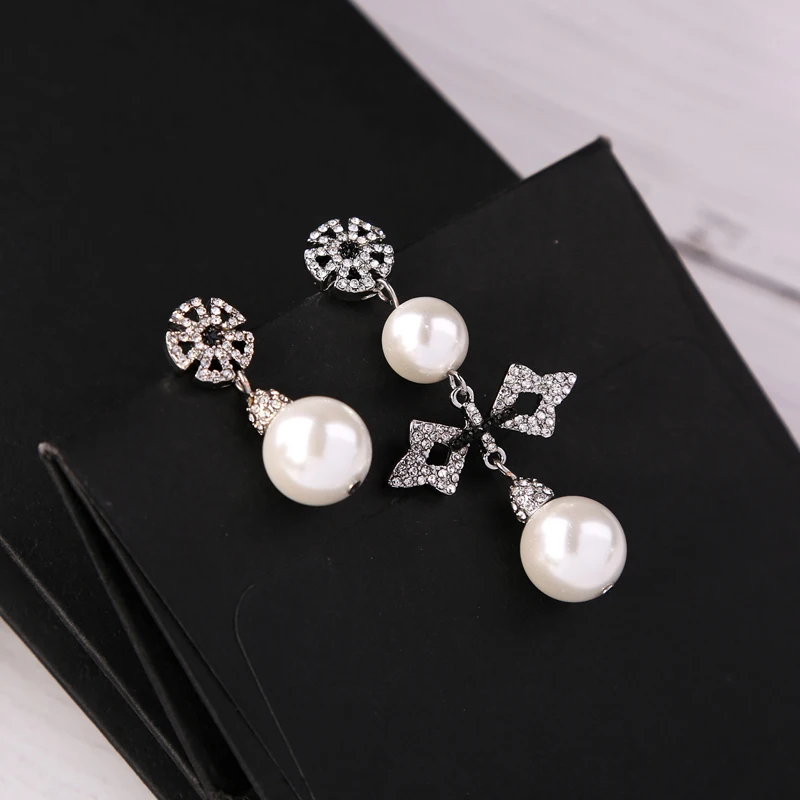 2020 Новый Ушные Капли Ювелирные изделия Асимметричная имитация жемчуга крест декор в виде пчел из подвеска, свисающие серьги для женщин, серьги 2020 Новый