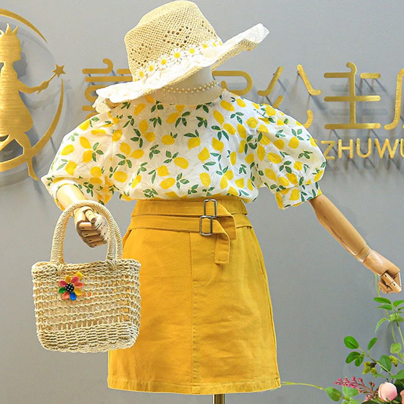 Комплекты одежды для девочек, Кружевной Жакет с расклешенными рукавами + вышитая сетчатая юбка, костюм из 2 предметов, детская одежда принцессы, лето 2021