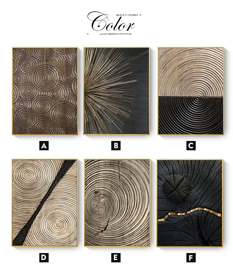 Настенные художественные постеры в стиле ретро с абстрактными черными и золотыми линиями, 3D кольцо с деревом, радиальные линии, Скандинавская Картина на холсте, картины для домашнего декора