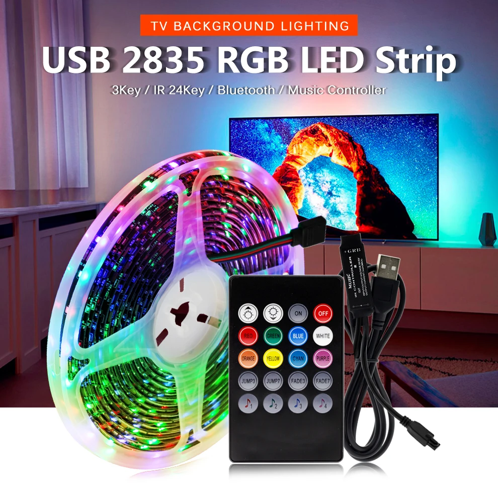 Сменная RGB Светодиодная лента с USB 2835, гибсветильник Светодиодная лента с Управлением по Bluetoothуправлением музыкой сделай сам