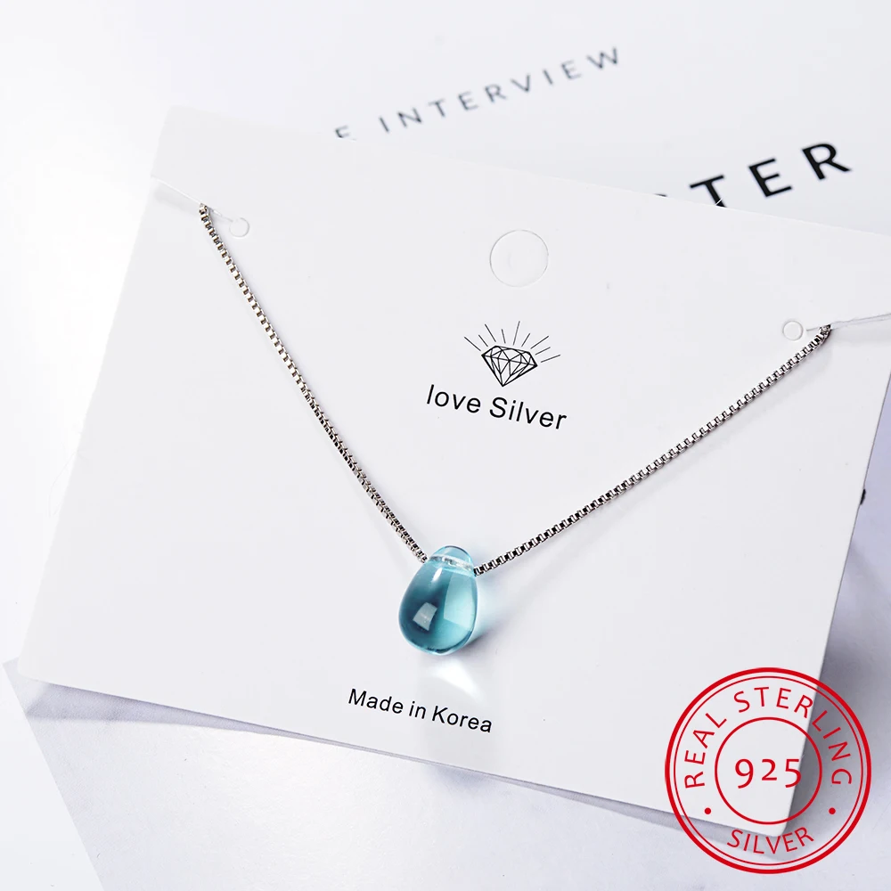 Ожерелье с подвеской в виде капли воды из настоящего синего кристалла, серебро 925 пробы, ожерелье-цепочка до ключиц для женщин, подарок для девушки